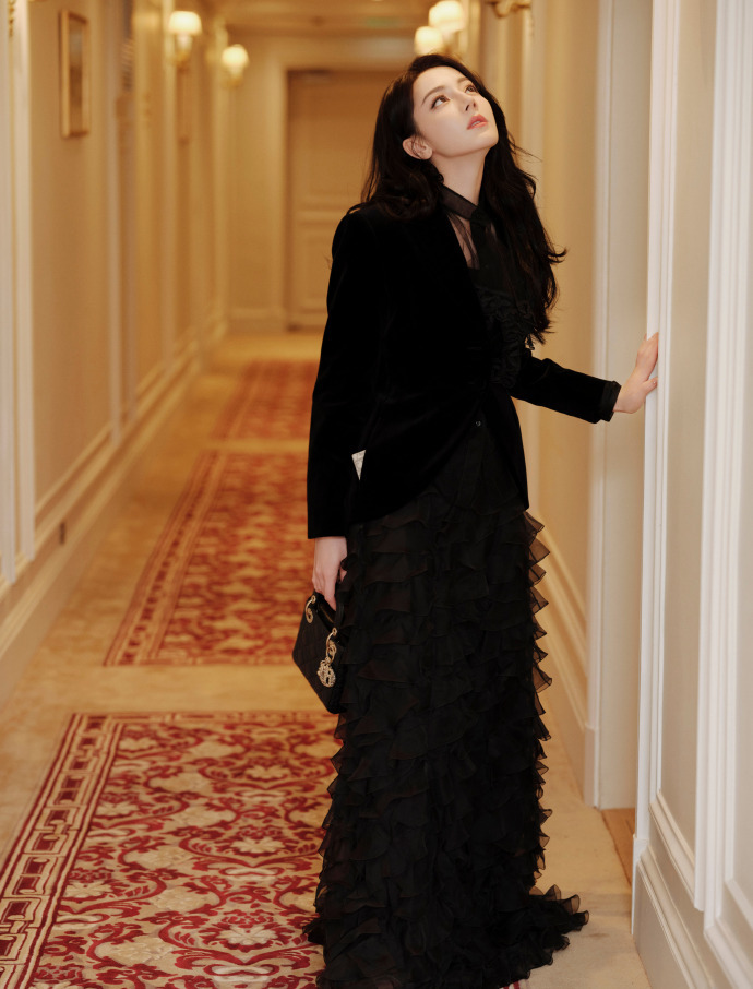 刘亦菲把死亡玫粉穿出了定制款的感觉,这种颜色普通人穿上分分钟黑三度,她居然能穿出