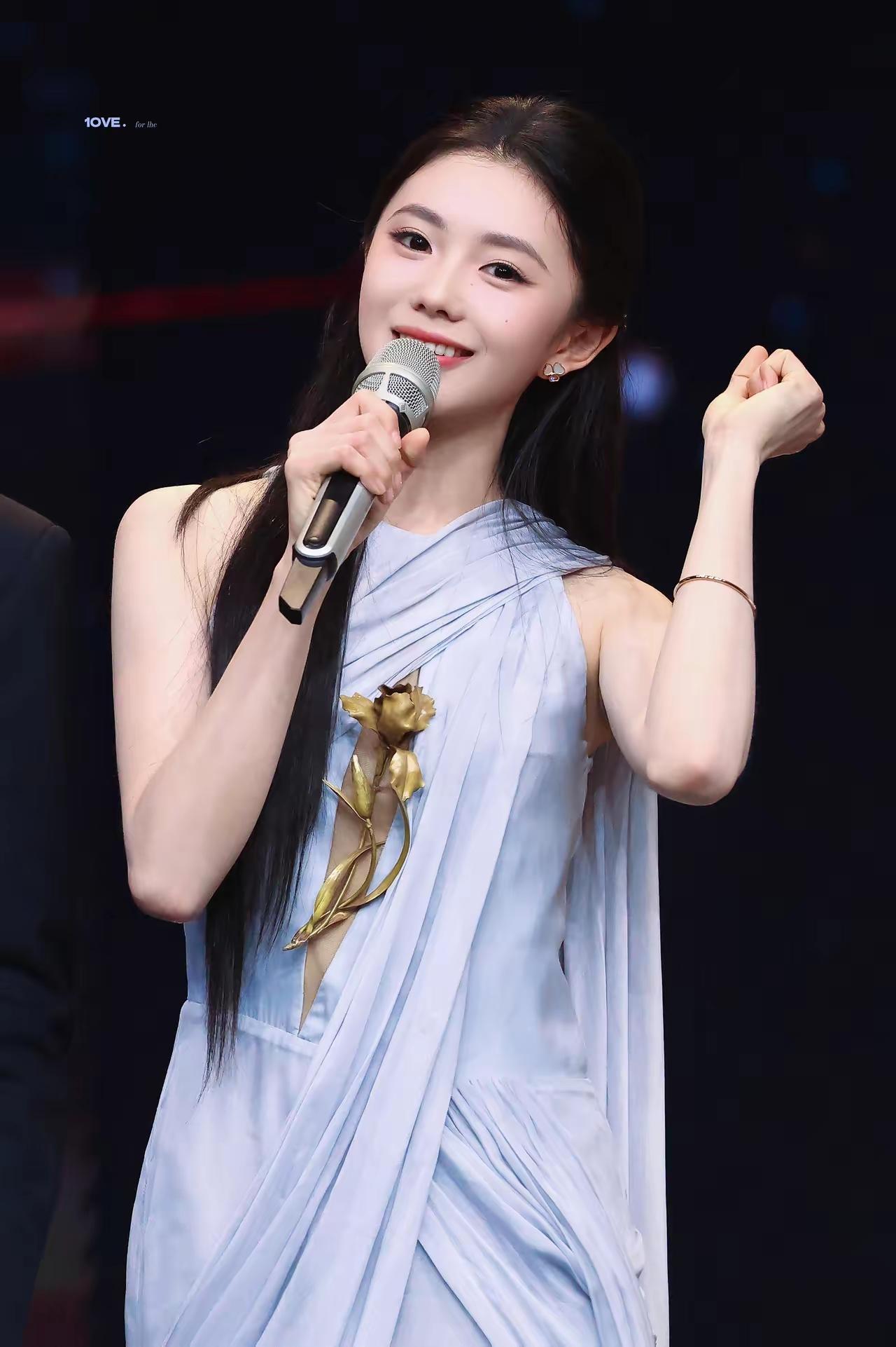 这位美女拿着麦克风,穿着漂亮的裙子。在你家乡老婆用方言是叫什么呢气质裙子女人