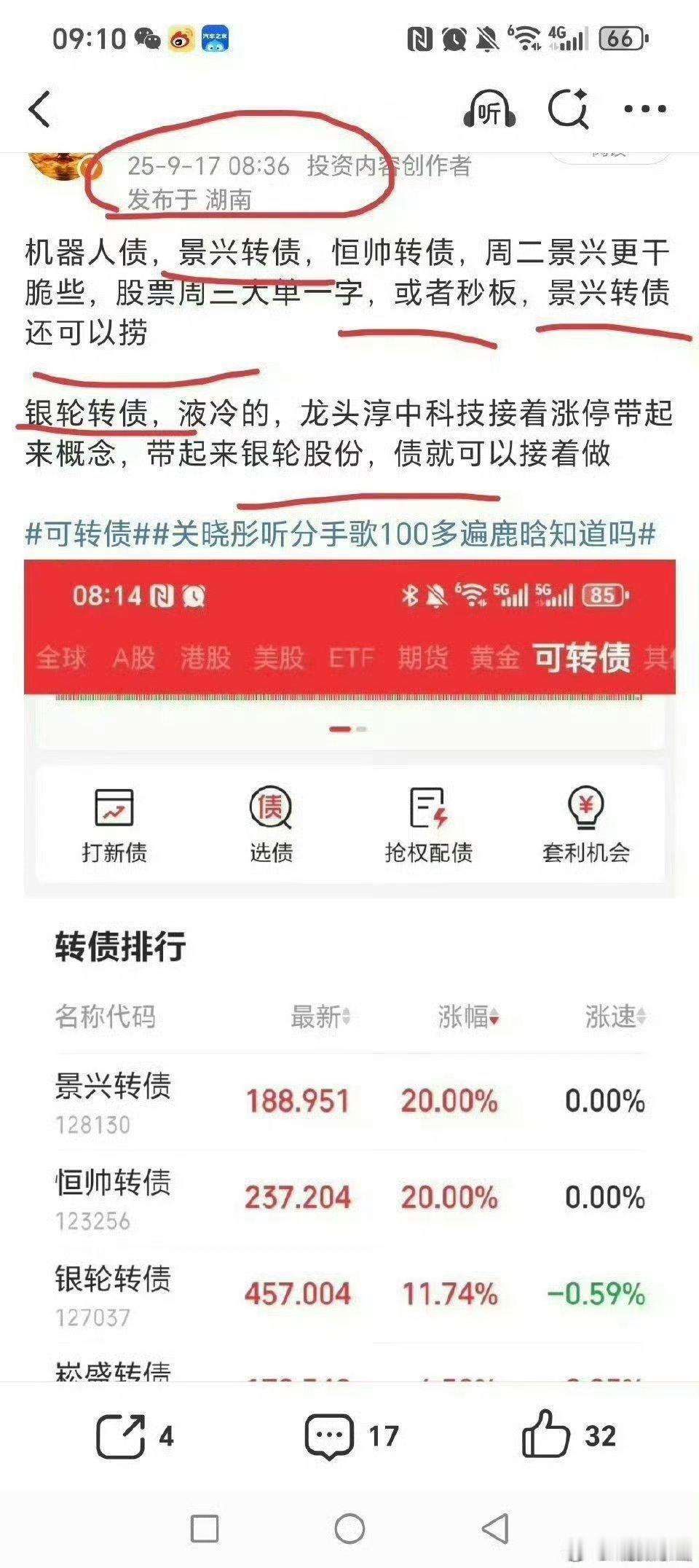 九月中提的福利首开股份三十点,第二次再十几点,景兴转债两天三十点,黄金西部黄金和晓程科技两天三十多点!!