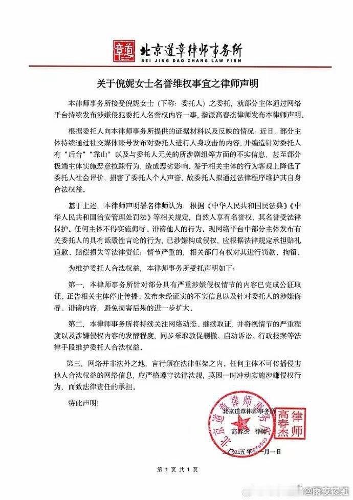 倪妮名誉维权声明谁都不该被无端造谣伤害,维权这步必须站。不跟着传闲话,就盼着她的