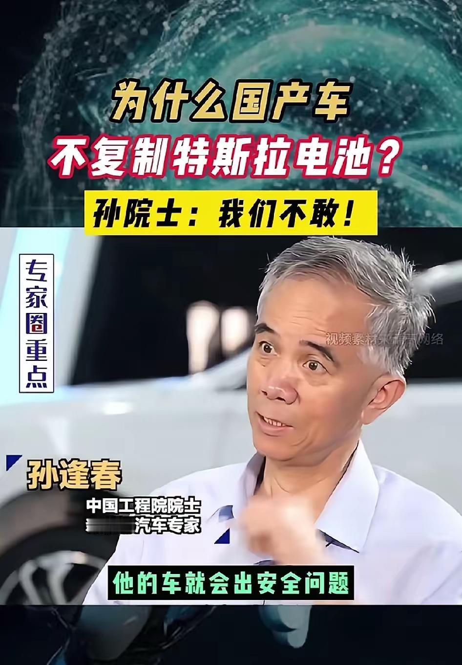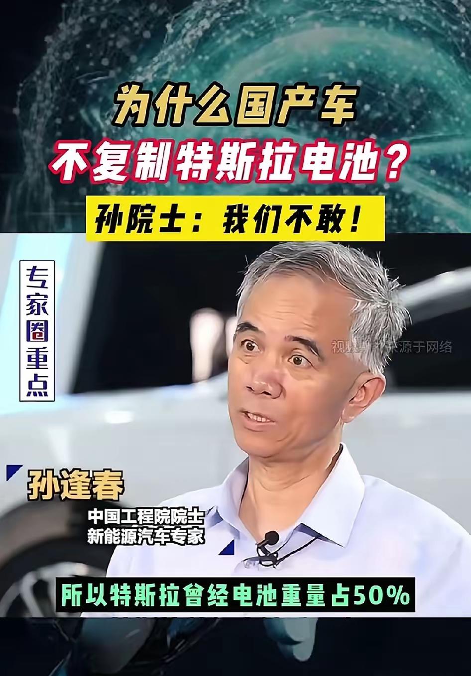 孙院士说国产电车不敢学特斯拉电池技术,人家车有上万个小电池,2万个焊点,焊接技术要求苛刻。 最近刷到“孙逢春院士说中国没能力复制特斯拉电池”的说法,仔细翻了院士的访谈原文才发现,这完全是误读。人家从没说“没能力”,而是明确表态“不敢抄”——一字之差,差的是对技术路线的根本判断。 先核实事实:孙逢春院士确实提过特斯拉电池的特点,用上万节小电池堆叠,光焊点就有两万个,任何一个出问题都可能引发安全事故,所以直言“我不敢,中国也不敢”。 其实,这话的重点是安全风险,而非技术实力。要知道,实际上我国的激光焊接精度早就达到微米级,宁德时代的电池封装工艺更是通过了航天级测试,真要硬抄绝非不能。 关键是“没必要”,更要走自己的路。特斯拉的方案是“堆料换续航”,电池占车重一半,本质是用数量博弈性能。 而国内车企早跳出了这个框架:比亚迪的刀片电池靠结构创新减少焊点,安全测试中被穿刺都不起火;宁德时代麒麟电池用水冷板替代大量连接点,能量密度还更高 。这不是能力问题,是选择问题——我们把安全放在了性能前面。 再看技术路线的分野:特斯拉靠高镍材料和复杂管理系统压风险,国内则走“结构创新+材料优化”的路子。比亚迪的磷酸铁锂电池成本更低,循环寿命还比特斯拉高30%;麒麟电池的热管理复杂度比特斯拉低40%,高温衰减却更少 。这种差异,就像有人选冒险的捷径,有人修稳妥的大道,没有高低之分,只是取舍不同。 现在全球动力电池市场,中国企业占了60%以上份额,靠的从不是复制。孙逢春院士的“不敢”,是对消费者安全的敬畏,更是对自主创新的底气。比起纠结“能不能抄”,不如看看咱们的电池技术已能适配从家用车到重卡的全场景——这才是真正的实力。 所以啊,有的有些网友别对专家权威抱有成见,要看见专家说的话,要看他们表达的意思再来评论,毕竟他们的确能力比我们高,见识比我们广,有时候他们说的话是为了让大家清醒。 我们也要平静冷静的看待专家说的话,是不是?大家觉得呢? 这番话引发的讨论,恰恰映射了当下技术发展的一个核心问题:我们要怎样定义“创新”?它是像特斯拉那样大胆堆砌,依靠大量的小电池和复杂的技术系统,不断突破续航极限?还是选择一条更稳健的路径,精雕细琢,在每一个细节上做到极致,确保安全与可靠性? 其实,这种技术路线上的分歧,不仅仅是电池技术的选择,而是更深层次的价值观冲突。特斯拉的“堆料换续航”方法可以在短期内让电动汽车在市场上占得先机,然而它也暴露出电池安全的隐患。焊接技术要求苛刻,焊点数量庞大,一旦发生问题,后果可能不堪设想。而国产车企像比亚迪、宁德时代却选择了另一种路径——通过结构创新、材料优化以及低风险的热管理系统,来提升电池的安全性和性能。这种选择无疑更加谨慎,也意味着更高的研发投入与技术积淀。 有些人或许会认为,国产电池的路线“保守”,缺乏特斯拉那种突破性的“革命性”创新。但从另一个角度看,这种“保守”恰恰是对消费者安全的最大尊重。我们并不是在说谁对谁错,而是在强调,在电动汽车这样的高风险技术产品上,安全问题从来不能掉以轻心。 此外,我们还需要反思一个问题:创新的最终目标是什么?是为了追求某个性能指标的极致,还是为了让产品更加成熟、稳定、可靠?特斯拉的技术或许在某些领域领先,但国内企业却通过其他创新路径,实现了自己的技术突破。比如,宁德时代的麒麟电池不仅在能量密度上超越了特斯拉,同时还通过高效的热管理技术,降低了电池的衰减速度。这种技术上的提升,不仅关乎性能,更关乎用户体验与长远发展。 换句话说,技术创新不仅仅是“抄袭”与“模仿”的问题,更是各自企业在不同发展阶段、不同市场需求下的选择问题。国产电池在全球市场占据60%以上的份额,正是凭借这一稳步前行的创新之路。我们不必一味看重谁更先进、更激进,真正值得关注的,是哪一条路能够更加符合中国市场的实际需求,并且在全球竞争中保持持续的竞争力。 因此,不如摒弃一些浮躁的情绪,认真看待孙院士的意见。他的“不敢”,正是对安全与责任的敬畏,也是对中国电池技术自主创新路线的坚定信心。我们不需要追求一时的“跟风”,而是要坚信,在自己的路上,我们能做得更好。 在这一过程中,消费者的需求、行业的良性竞争、以及企业的技术积淀,都是推动电动汽车行业持续发展的动力。未来的市场,终究会由那些既具创新精神又不忘初心的企业主导。特斯拉发展技术 特斯拉技术争议 特斯拉电池技术 电池发明人 特斯拉技术竞争 你怎么看待国产电池技术和特斯拉的差异?你认为我们是否应该跟随特斯拉的步伐,还是坚持自主创新的道路呢?欢迎大家在评论区讨论。