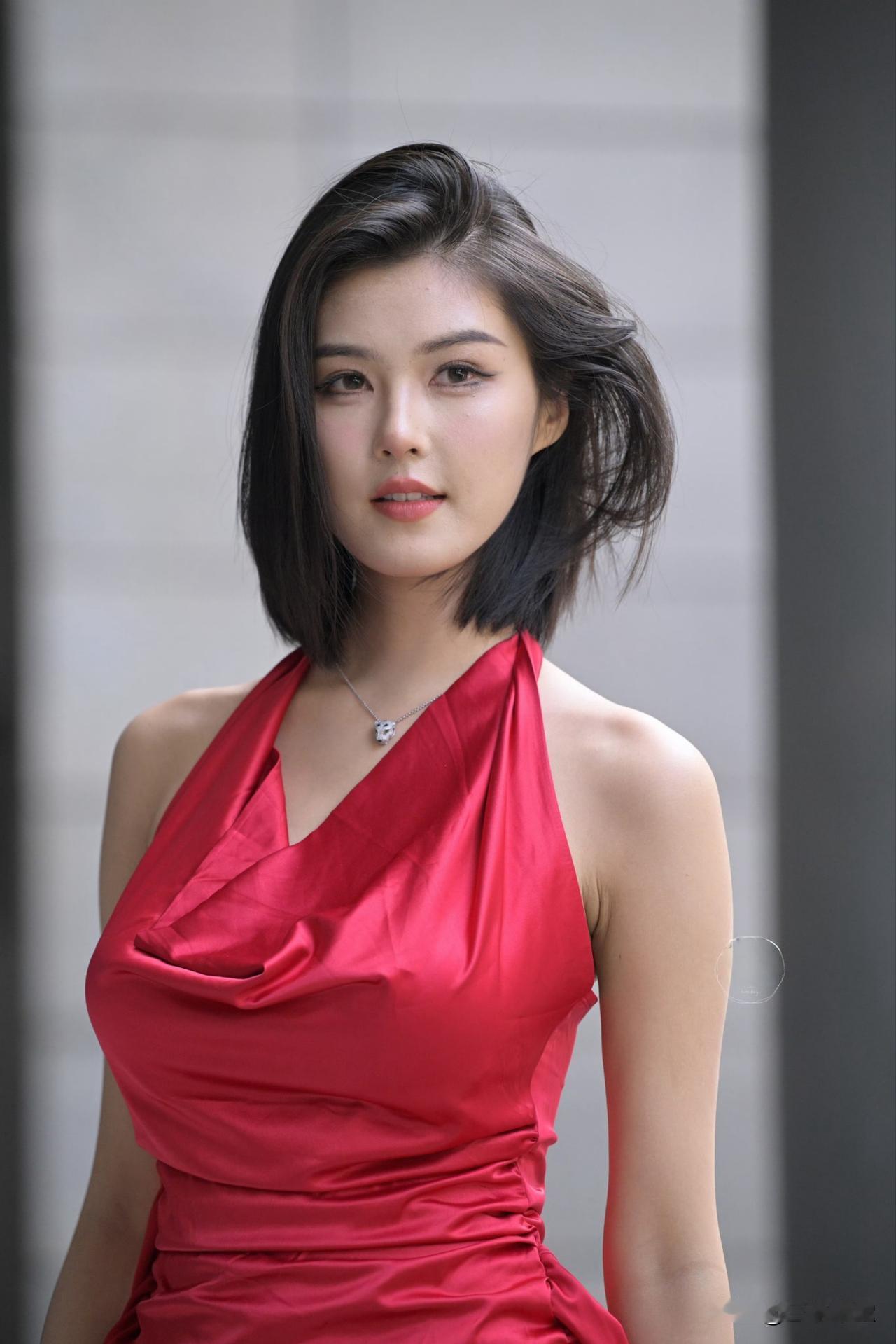 一抹亮眼红裙定格街头时尚瞬间~程儿越来越漂亮了!街拍 车模