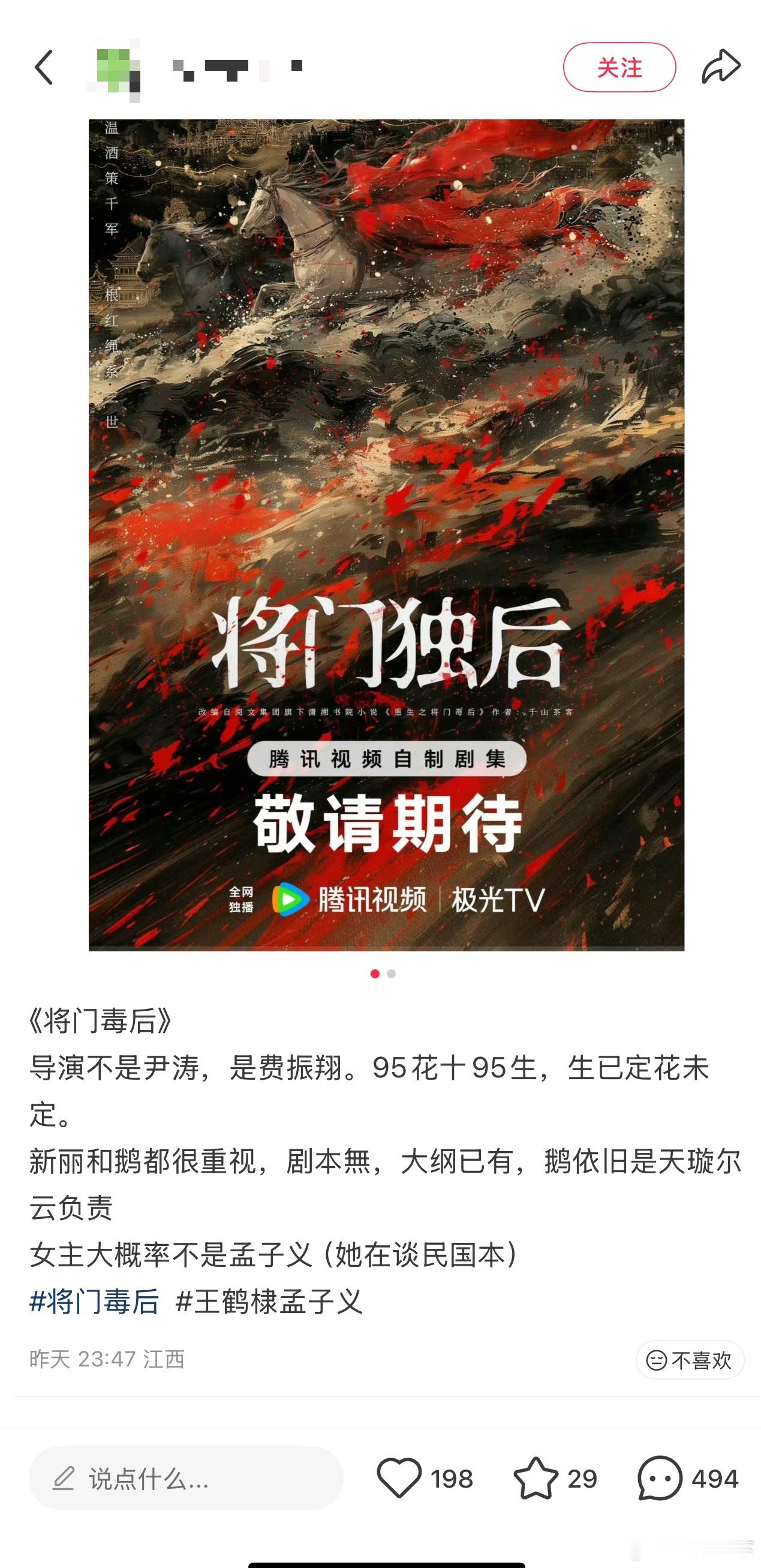 将门独后导演变成费振翔的话应该无人嫌弃了吧