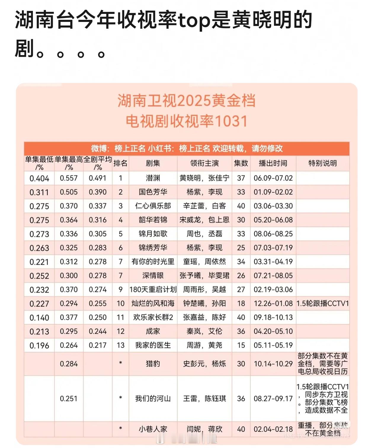黄晓明国民度挺牛的,但是对黄晓明几乎0加成,他这几年越来越flop了……收视率这种东西还是配合奖项或者网播才有用。