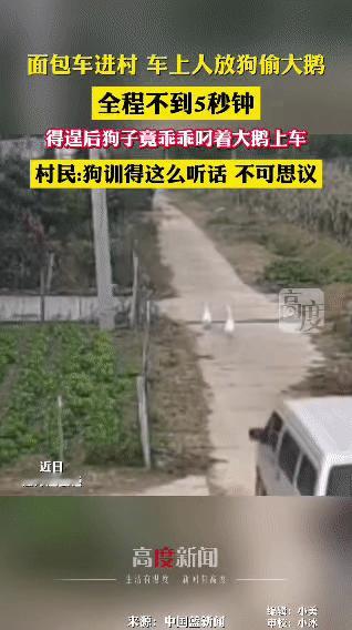 面包车进村放狗偷大鹅,全程不到5秒,村民:这狗训得也太听话了! 你敢信吗?一辆面包车悄悄驶进村庄,车上人放出的狗,竟然在不到5秒钟的时间里,精准完成“掐鹅—叼鹅—跑回车上”的一系列操作。村民王先生看到监控时直呼不可思议:“那狗下车,上去就把人鹅掐了就跑了,训得这么听话,简直没法相信!” 这偷鹅“效率”,说是训练有素的“作案工具”都不为过,离谱程度直接拉满! 我就想知道这到底该怎么判刑?友友们你们知道吗?家禽盗窃 狗抓大鹅
