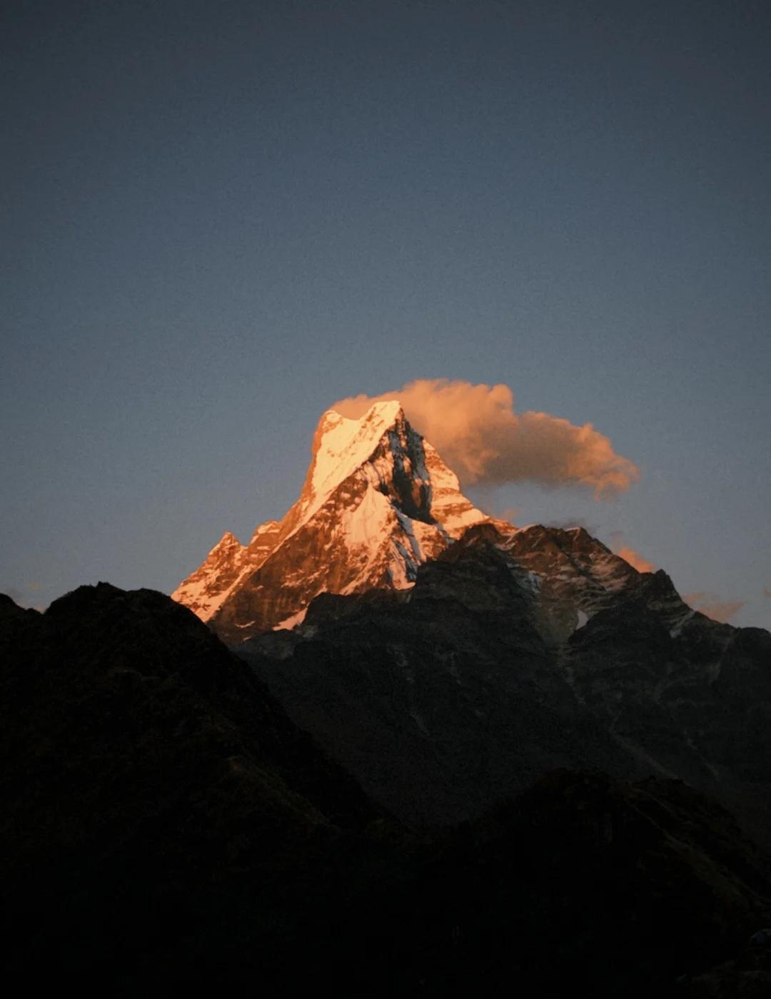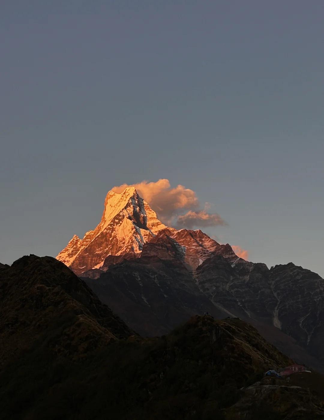 MBC自主徒步攻略(装备篇) 衣物: 登山鞋/越野跑鞋(越轻越好) 30/40L登山包(建议带个可收纳的冲顶小包) 厚羽绒(high camp之后会比较冷, 与睡袋相比,我更建议直接穿厚羽绒睡) 羽绒裤/棉裤(根据个人体感酌情携带) 抓绒/棉服(凌晨去BC时动态保暖需要) 速干/压缩衣打底 手套(可稍厚一些,主要防风防晒保暖) 抓绒帽/羽绒帽 魔术头巾(可当脖套,防风防尘) 雨衣(带三合一连包一起罩进去的那种) 风壳(因为路线比较成熟,沿路基本都有茶屋可以歇息,相对于硬壳冲锋衣,我更倾向于带件轻量化风壳) 墨镜 短裤(压缩裤) 换洗内衣裤 [耶]必带: 🎫登山许可证(提前自主办理,3000rs) 但实际徒步过程中, 我没有经过检票点, 这张许可证就一直放包里没有拿出来过 /头灯(确保前一夜喂他吃饱电) 建议携带: 500ml保温杯(接热水) 唇膏(防嘴唇干裂) 有炉头的话可以在博卡拉买个气罐(800rs)带过去烧水做泡面 急救包(急救毯创口贴碘棒等) 现金(8000-10000rs) 登山杖(包比较重的话尽量用双杖) 耳塞眼罩 MBC 尼泊尔 徒步 徒步丈量世界 MardiHimal 鱼尾峰 装备 攻略 日照金山