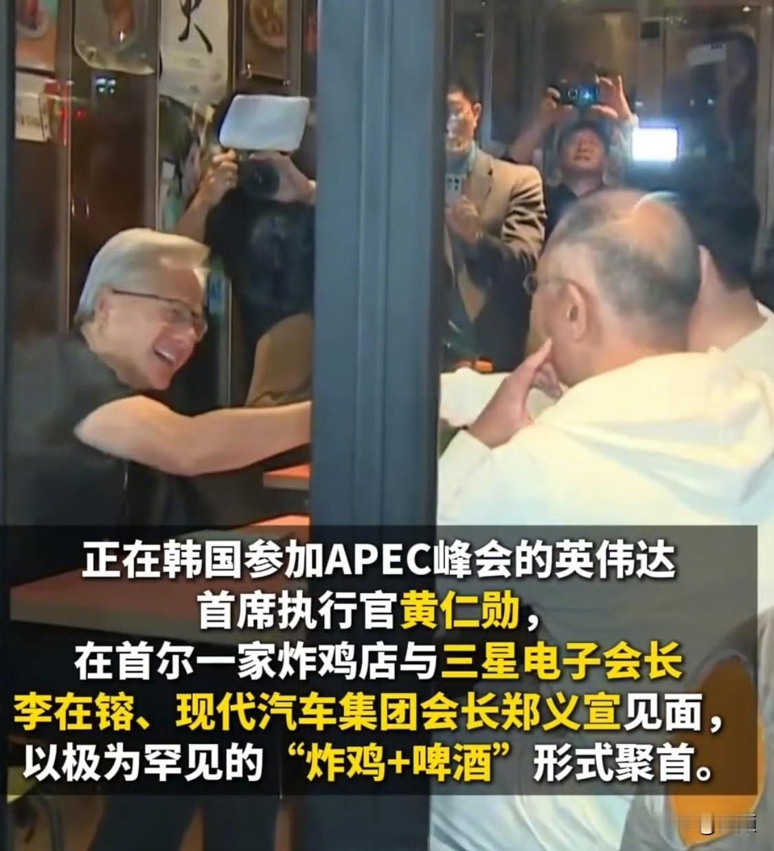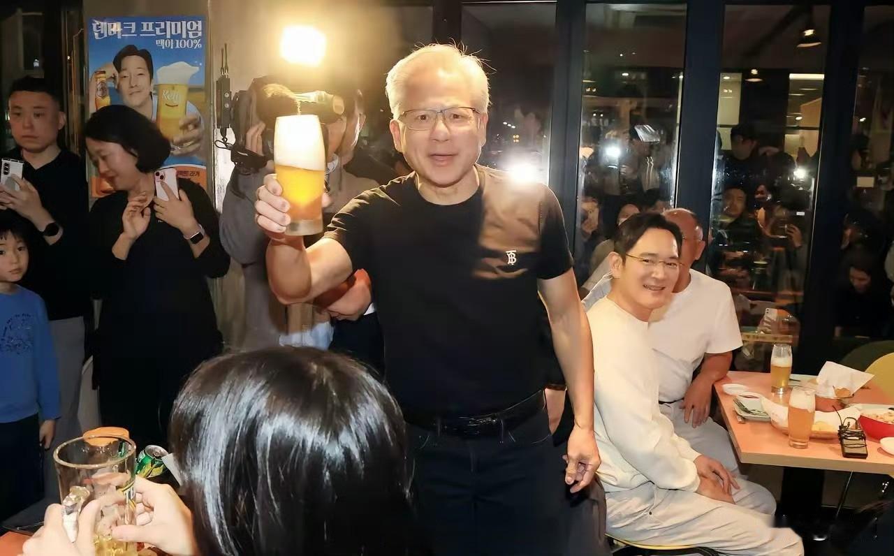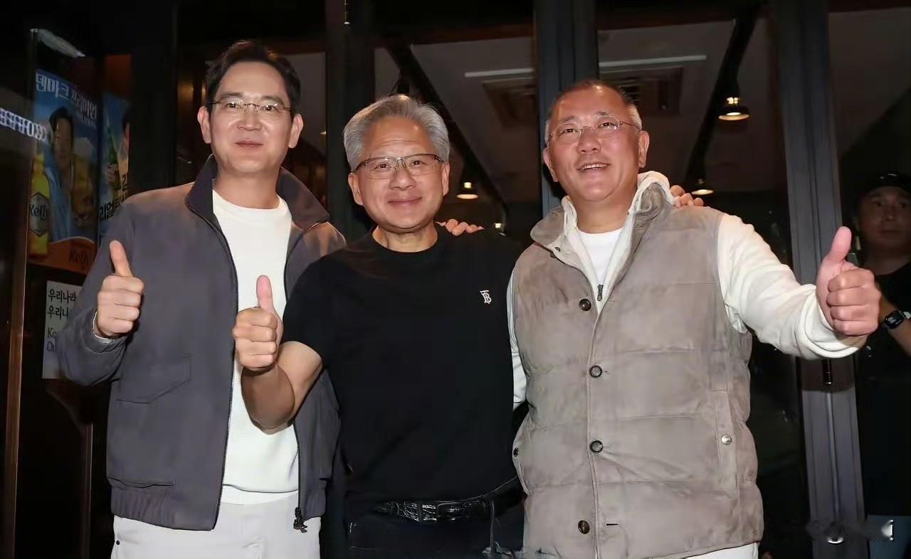 史上最贵炸鸡啤酒局?2025年10月30日晚间,英伟达首席执行官黄仁勋为出席亚太经合组织(APEC)峰会访韩,并与三星电子会长李在镕、现代汽车集团会长郑义宣在首尔一家名为“Kkanbu Chicken”的炸鸡店共进晚餐 。 他们点了三份炸鸡、芝士条和三杯生啤,黄仁勋还喝了隔壁桌的烧酒配啤酒 。用餐期间,黄仁勋向李在镕和郑义宣赠送了印有英伟达DGX字样的礼盒,这是英伟达的小型人工智能电脑,礼盒上附有黄仁勋手写的卡片,上面写着:“致我们的合作和世界的未来!” 。 晚宴结束时,黄仁勋喊出“全场免单”,但实际账单由李在镕和郑义宣共同支付,约250万韩元(约合人民币12450元),其中包括了当时餐厅内其他所有顾客的餐费 。 一顿炸鸡啤酒的热闹背后,其实是26万块GPU的超级订单。黄仁勋喊着“全场免单”让李在镕、郑义宣结账的名场面,更像场精准的商业社交——前一天递上印着DGX的礼盒,第二天就敲定韩国主权AI与企业AI工厂的芯片供应。英伟达盯上韩国,是看中其半导体制造能力与AI落地需求,而韩国需要GPU搭建技术护城河。这哪是聚餐,分明是用烟火气包装的战略结盟。