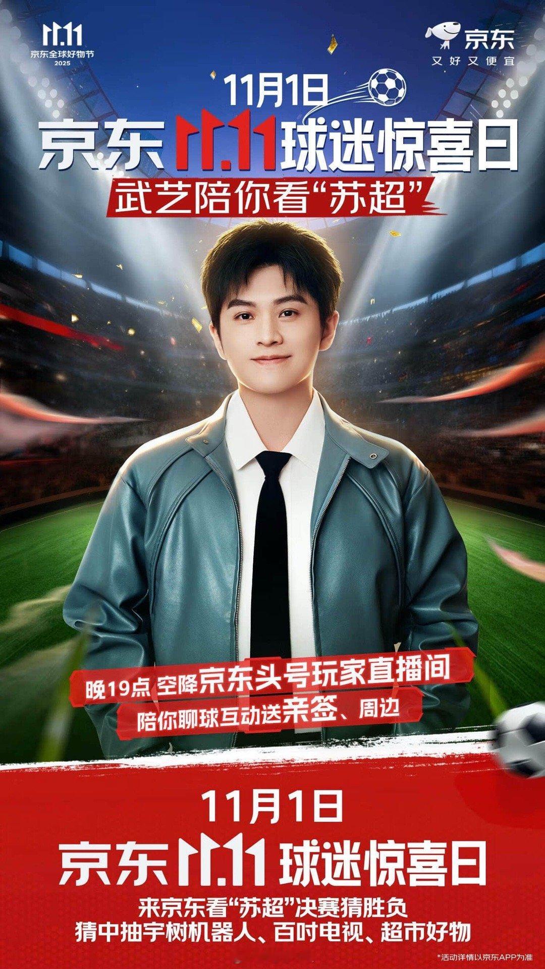 而且晚7点,武艺会来京东头号玩家直播间陪咱看球唠嗑!又能看巅峰对决,又能抢福利赢大奖,还有明星陪看,这日子过得也太爽了!11月1日锁定京东,咱一起边看球边赢,冲就完事儿!