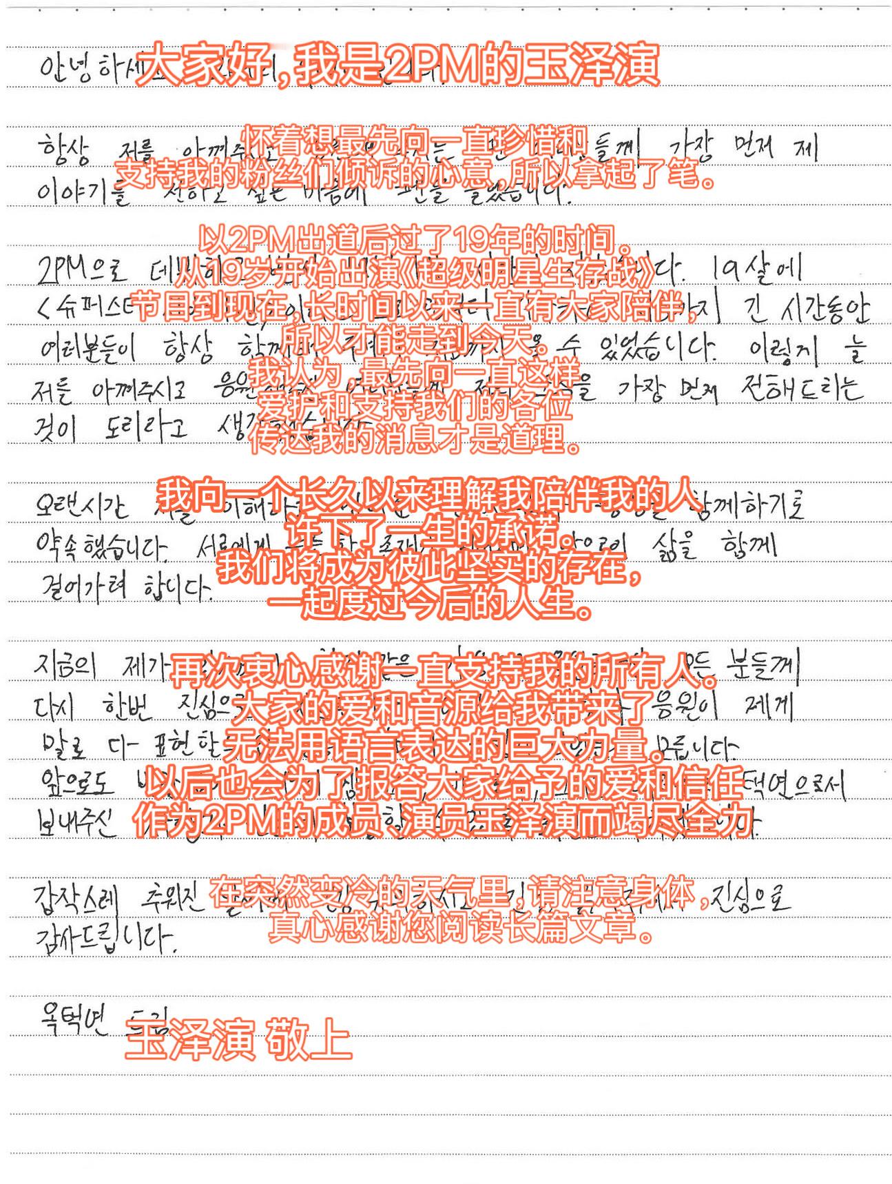 哦莫2PM玉泽演晒手写信宣布结婚!