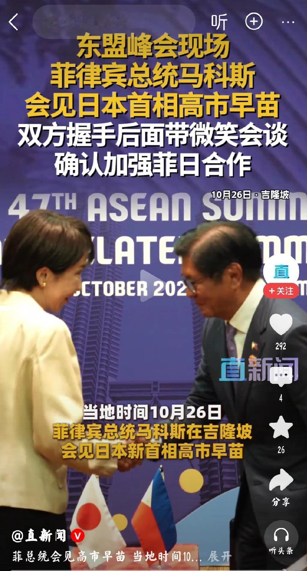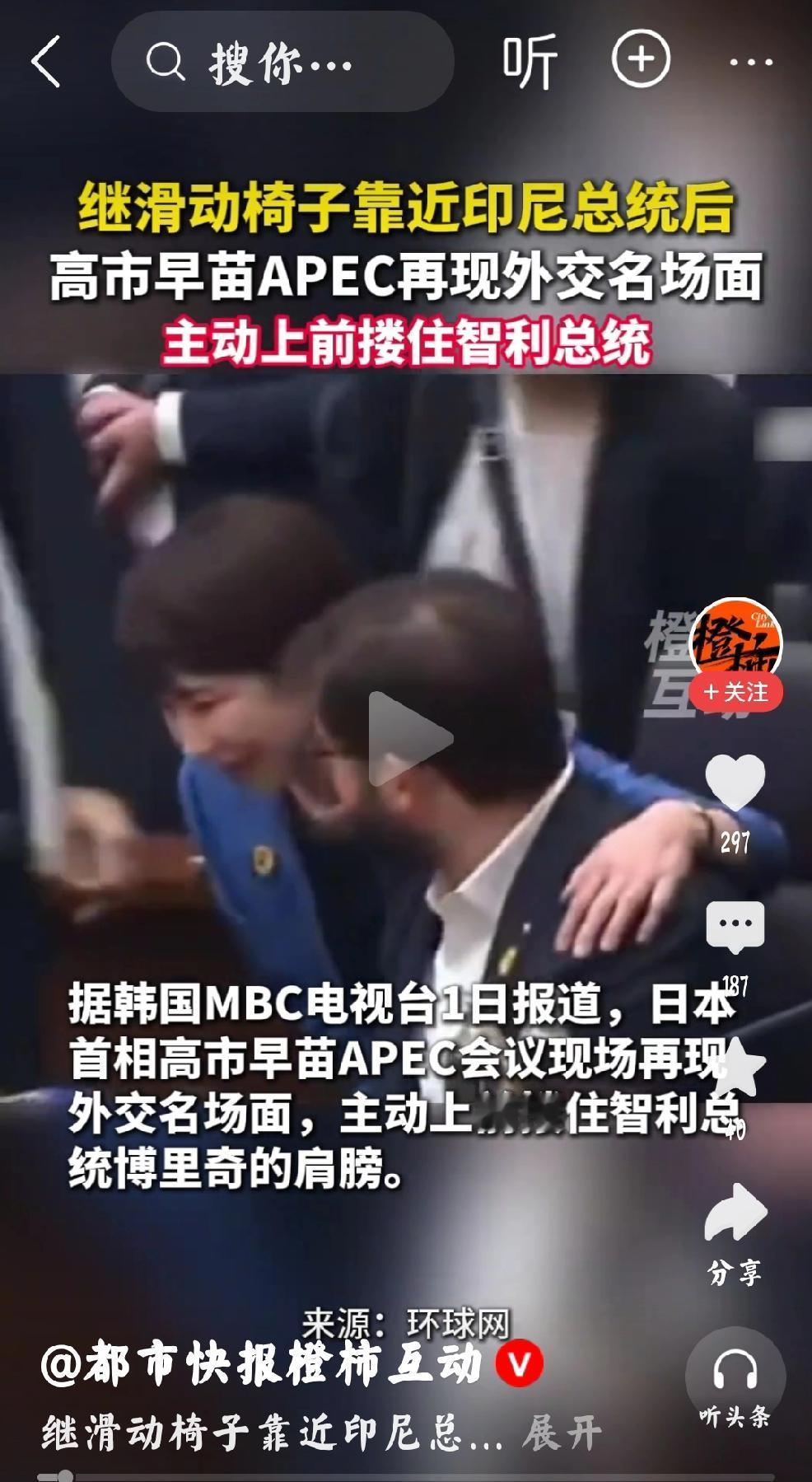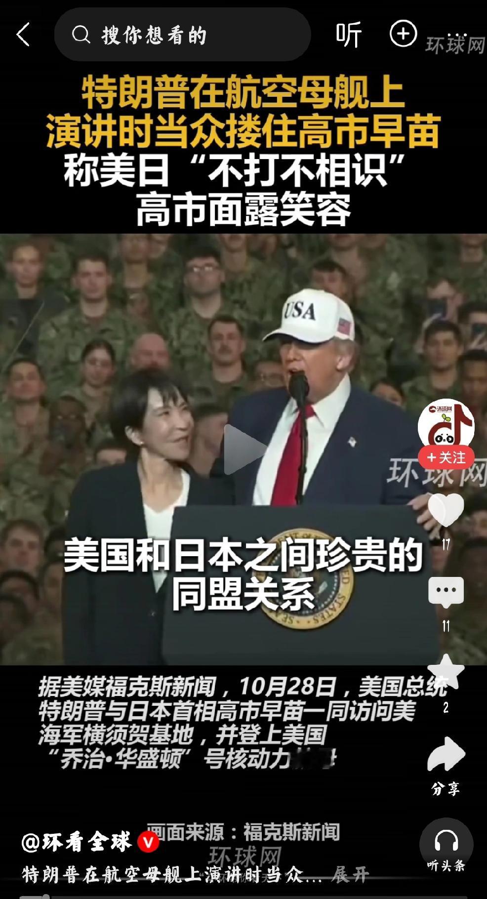 高市早苗:树林间的丑花蝴蝶 个人观点:提前说一句,语言攻击者,不知是人?是鬼? 几天功夫,数家媒体的视频截屏留作记录,这位日本女首相的国际场合真是令人大开眼界,大出意料之外。 身为日本政坛第一人,应该是严肃的政客形象,当下与夜总会的妈妈桑一模一样。 这样的外在举止,足可以显露其人的心肠与思想。 不得不让人看低日本,这可是日本民众投票选举的首相。也就一般般,一般般。