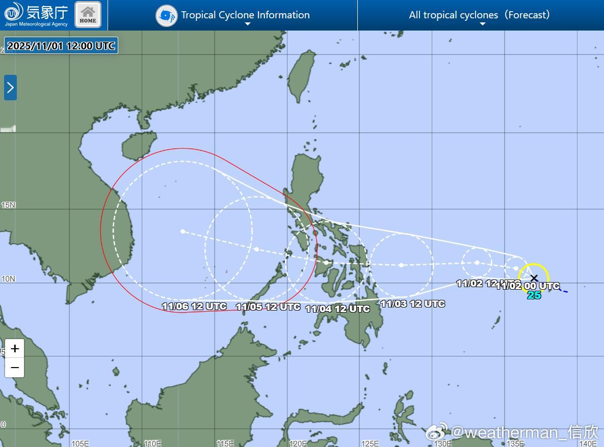 台风海鸥 今天菲律宾东侧的热带低压不断发展,今晚日本气象厅将其升级编报,成为今年25号台风海鸥。未来海鸥在北侧副热带高压的引导下,西行为主,将先后登陆菲律宾和越南,大概率不会登陆我国。但下周会导致南海出现大风,海南部分地区也可能出现降雨。因此又是一个不登陆我国,但有影响的台风。