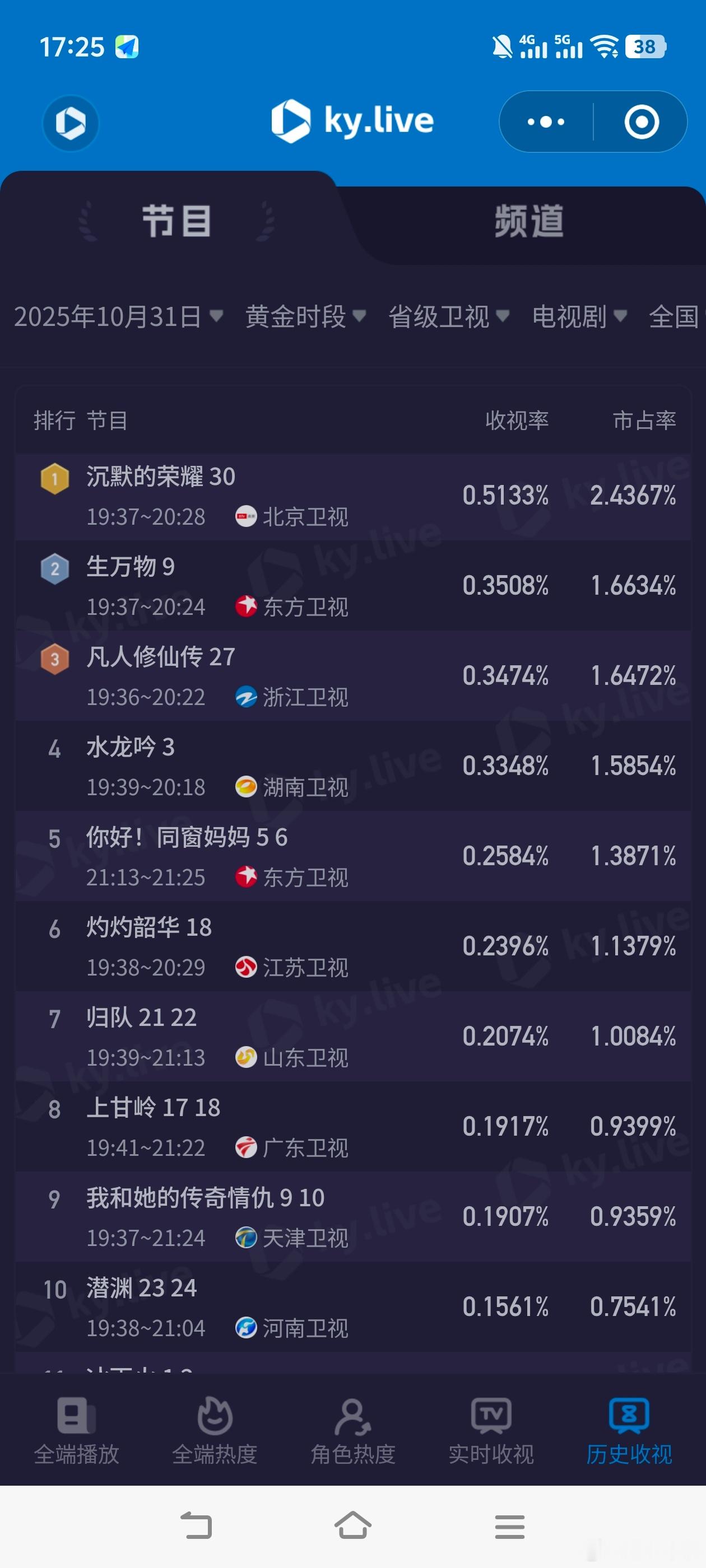 凡人修仙传10月31日cvb收视日报,凡人修仙传新高[good][good]依
