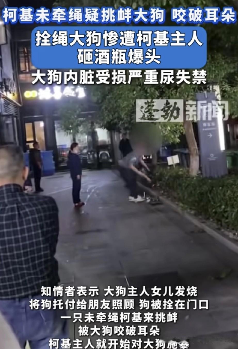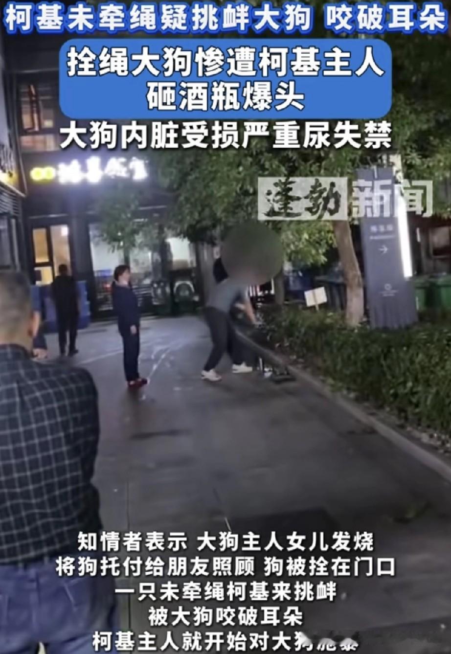 街边,一名男子接连用空啤酒瓶猛砸马犬头部,瓶瓶命中,马犬惨叫连连,这一幕引得路人纷纷驻足围观。事情的起因是,男子的女友带着未栓绳的柯基犬在街头闲逛,柯基跑去挑衅一只被拴着的马犬,结果耳朵被咬伤,只是一个小口子。然而,男子女友却在群里宣称自家柯基被咬死,颠倒黑白。 柯基犬的男主人恼羞成怒,强行将马犬拉到路边,抄起空啤酒瓶就往马犬头上砸,一连砸了十几个。他仍不解气,又抄起砖头继续施暴。旁边宠物医院的工作人员实在看不下去,上前劝阻,却被该男子划伤。男子还恶狠狠地扬言,谁再劝就一起打。 知情人说马犬主人当时不在现场?原来是他女儿突发高烧,他送女儿回家,便将马犬托付给朋友照看,马犬被拴在门口,而且是有狗证的。此次冲突完全是柯基主动挑衅所致。 附近邻居透露柯基男主人并非首次殴打别人家的狗,类似行为已发生多次,可见其有暴力倾向,这让附近养狗的人忧心不已,生怕自家狗狗也遭遇同样的厄运。 可怜的马犬被打得重伤,内脏严重受损,甚至出现了尿失禁的状况。柯基不拴绳本就理亏,柯基主人竟还殴打有绳约束的马犬,他哪来的底气?大家纷纷支持马犬主人追责到底。要知道,训练有素且有狗证的马犬价值不菲,十个柯基的价值或许都不够赔偿呢!