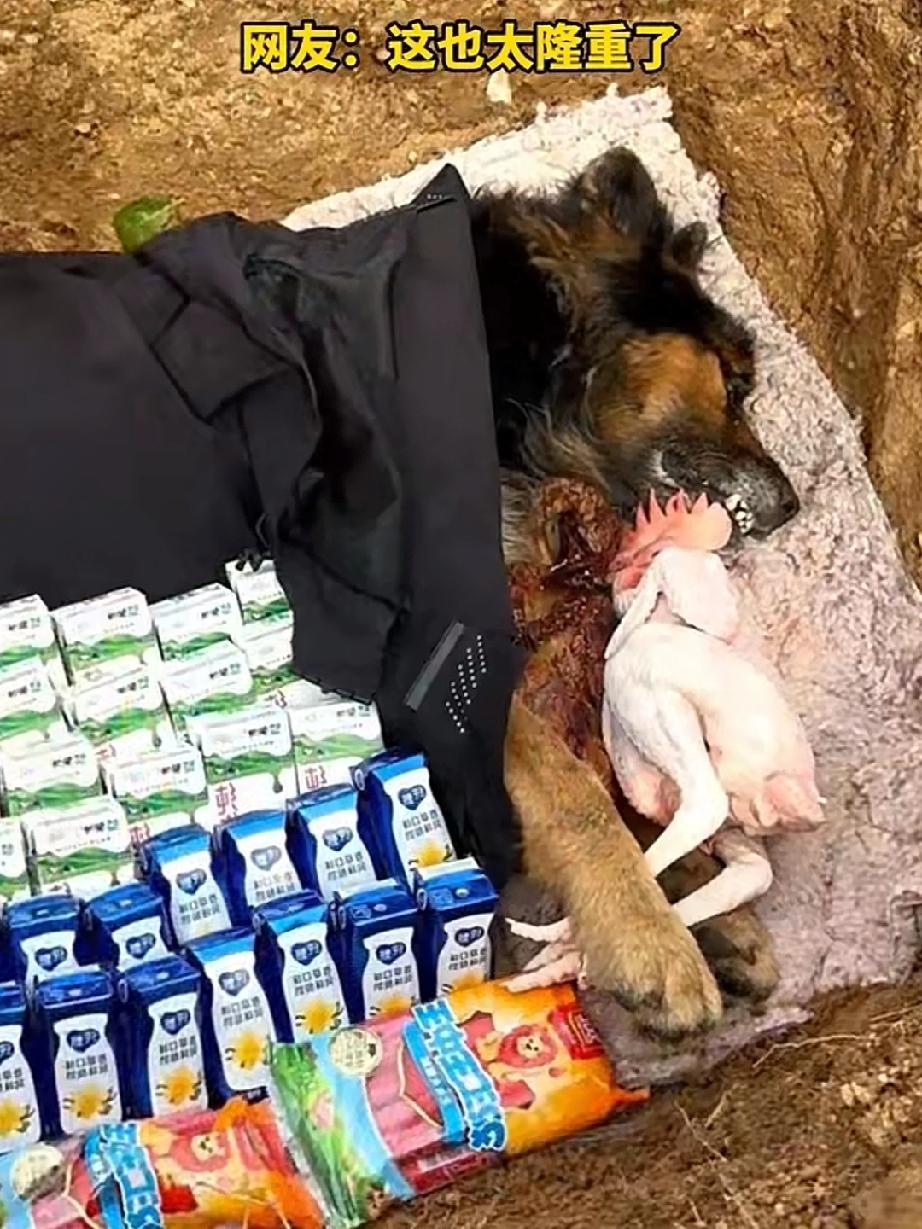 狗子去世后主人为其“厚葬”! 养了多年的狗子永远的离开了主人,主人落泪感慨:狗子成百上千个日夜为我看家护院尽忠尽责。狗子安静的躺在那里,身边堆满了吃的喝的,这些都是狗子爱吃的,可惜再也吃不到了,善良的主人从没亏待狗子,即便离世也以“厚葬”的方式为它送行,这一幕看哭了无数爱狗人士,没养过狗的体会不到养狗的乐趣,更体会不到狗子离世后会给主人带来无比的悲痛! 愿狗子来世再次回到主人身边为她看家护院,忠诚护主!