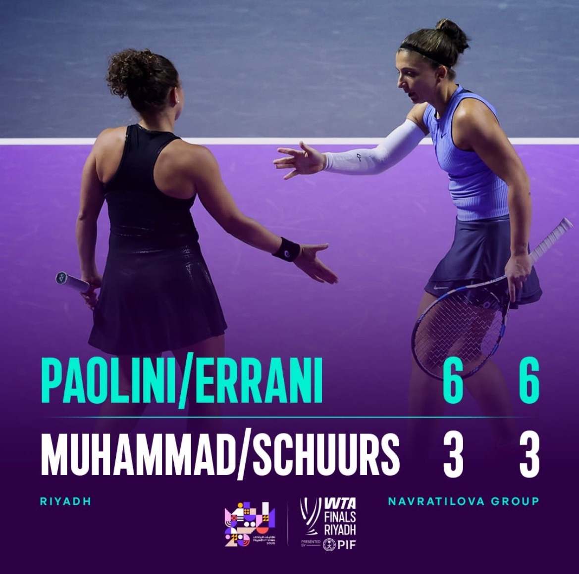 wta年终总决赛大合影 泡利尼/埃拉尼两个6-3击败穆罕默德/斯楚尔斯组合,赢得总决赛揭幕战开门红!