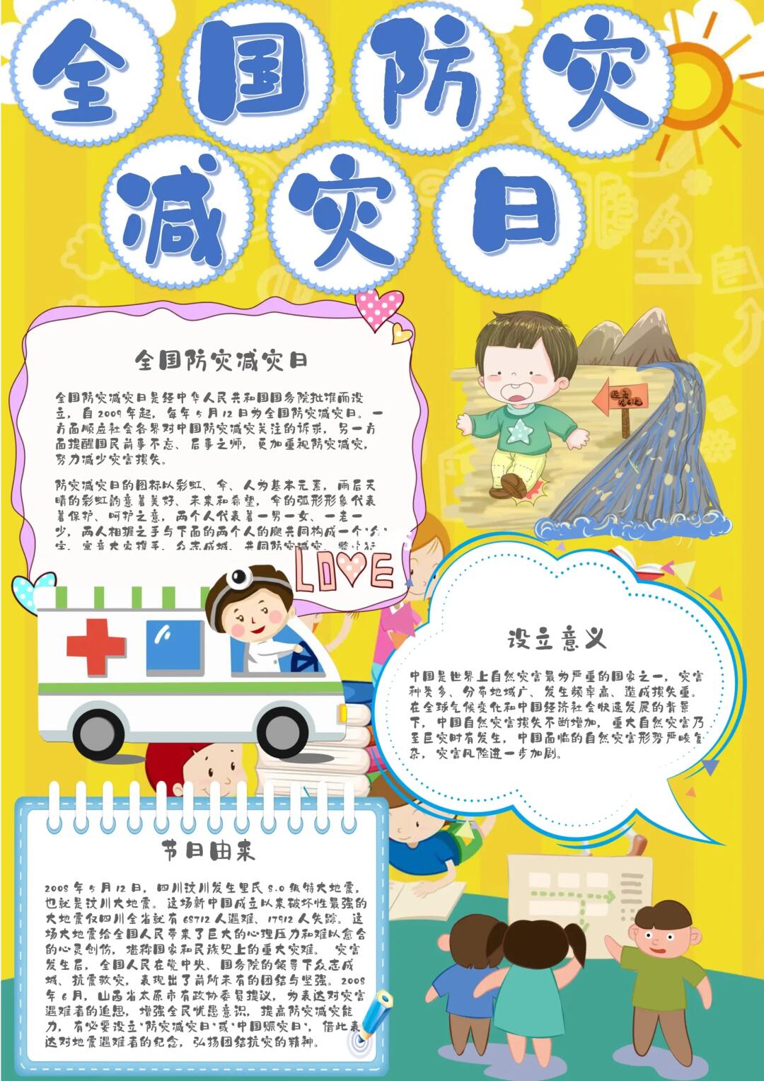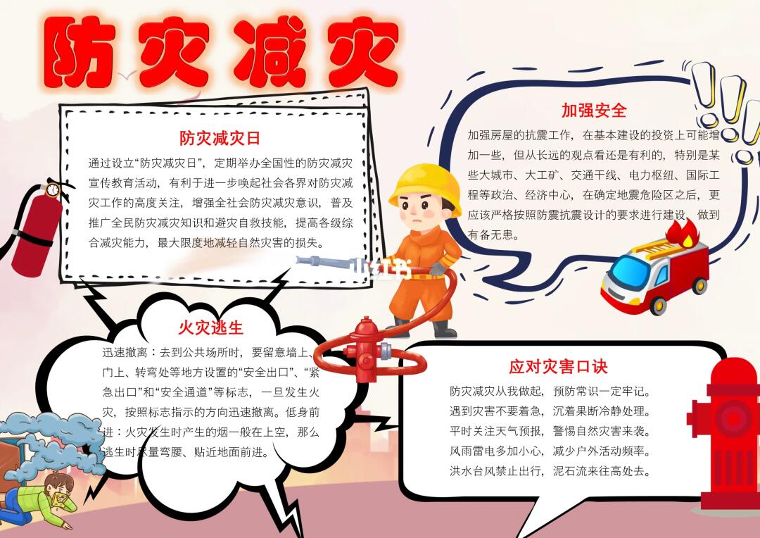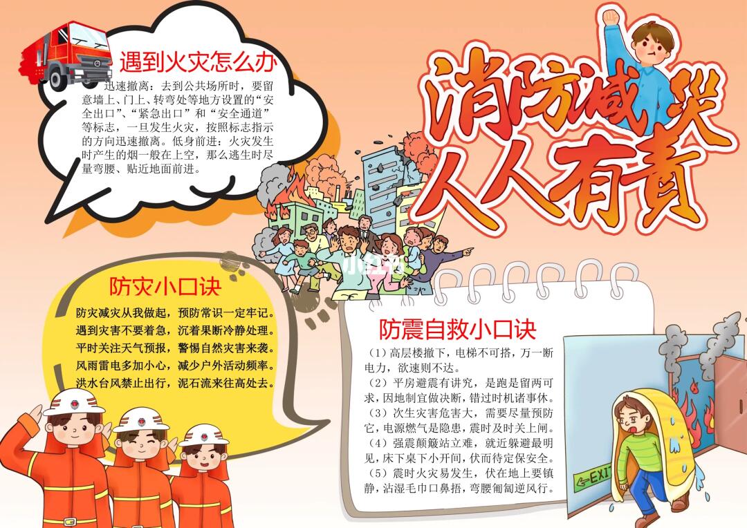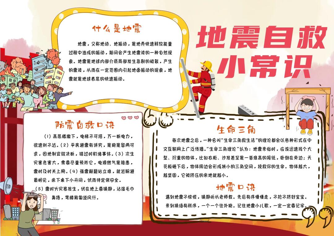 📚“防震减灾、防灾减灾、消防安全”等系列主题手抄报模版, 🎨标题、元素、图片、文案素材适用于主题画、手抄报、黑板报、手账,及相关的美术课程。 📚模版图片来源于