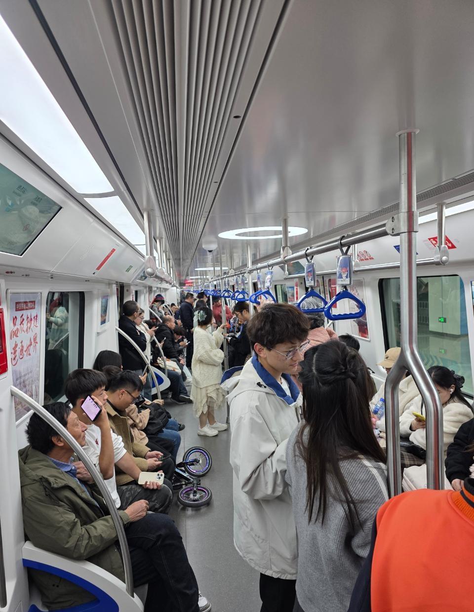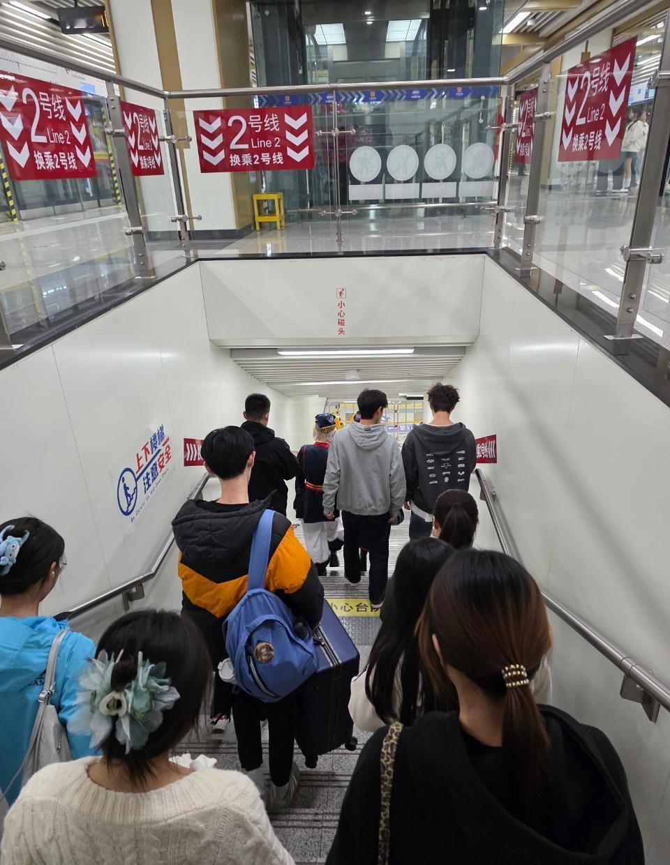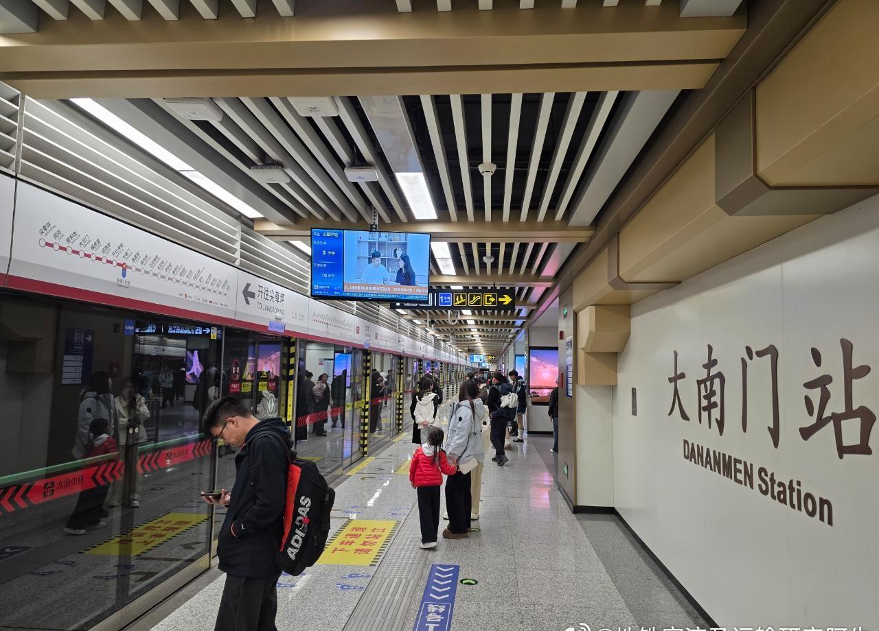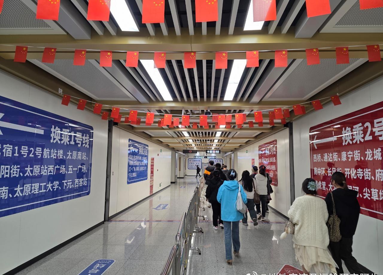 网友:2025年11月1日(星期六),太原,16:30,天气晴好,实时温度19℃,非常适合出门赏秋。 图1为太原地铁1号线柳南站(出入口,秋色正浓),图2为柳南-大南门区间,图3图4图5为大南门站1号线2号线便捷换乘通道,图6图7为太原地铁2号线大南门站站台,图8为大南门-开化寺街区间。由于太原地铁只有两条线路一个换乘站,未形成网络,客流还有很大提升空间。