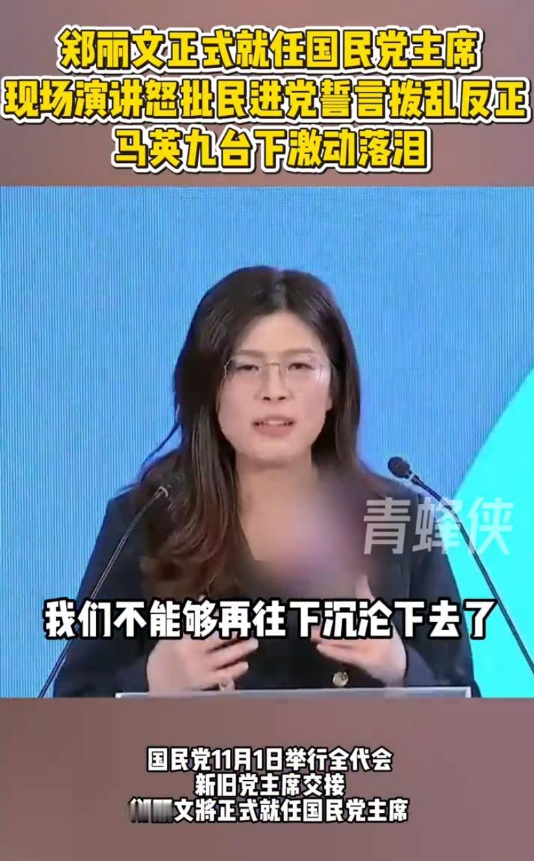 郑女士就任国民党主席时的致辞, 当她讲到我们不止代表中国国民党,更代表台湾精神台湾价值,台下掌声雷动,马先生使劲鼓着掌,情绪激动,似乎要掉眼泪。 这句致辞能引发如此强烈的共鸣,绝非偶然,它戳中了台湾社会被政治操弄多年后的真实渴求。 郑丽文口中的“台湾精神台湾价值”,早已不是民进党炒作的空洞符号,而是藏在她个人政治轨迹里的答案。 从早年参与野百合学运的民进党青年军,到后来因理念分歧转投国民党,再到如今以党主席身份高喊“两岸一家亲”,她的转变本身就是对“台湾价值”的重新诠释。 民进党执政这些年,把“台湾价值”绑上“仇中”“台独”的战车,一边喊着“抗中保台”,一边让台湾经济陷入困局。 作为支柱的半导体出口前三个季度跌了近两成,股市蒸发万亿新台币,年轻人找工作越来越难,而当局还要把本应用于民生的钱挪去买武器,计划未来几年把防务预算提到GDP的5%。 这种把民众福祉当赌注的做法,早已背离了台湾人务实打拼的本心。 郑丽文的致辞之所以能让马英九如此激动,源于两人对“台湾价值”的共识。 马英九任内那些年,坚持“九二共识”,推动两岸全面“三通”,让台湾民众享受到了和平红利,2015年新加坡的“习马会”更是两岸关系的高光时刻。 他后来多次率台湾青年赴大陆交流,带着大陆师生逛台北故宫,一遍遍强调“两岸同属中华民族”,所做的一切都是在守护和平发展的根基。 可民进党上台后,这些交流被频频阻挠,两岸关系急转直下,台海局势越来越紧张。 当郑丽文在致辞中明确要“继承连战‘破冰之旅’遗志”“推动两岸对话”,甚至提出恢复两岸直航、对接台胞医保这些务实举措时,马英九的掌声里,藏着对和平路线回归的期盼,更藏着对台湾重回正轨的迫切。 这种对“台湾价值”的认知差异,在郑丽文与民进党多年的交锋中体现得淋漓尽致。 2021年在“立法院”,她质询时任“行政院长”苏贞昌关于自造潜舰的问题,直指军备竞赛对台湾的消耗,被苏贞昌反呛“投降”,她当即回击“第一个投降的是你,第二个是蔡英文”。 如今回头看,当时热议的自造潜舰交舰日期一再推迟,民进党却还在要后续预算,这场争论早已说明,郑丽文对“台湾价值”的理解,始终扎根在现实,与其把钱砸在看不到希望的军备上,不如用来改善民生。这 种务实态度,和民进党把“台湾价值”当政治工具的做法形成了鲜明对比,也难怪她能以“战斗型女将”形象胜出,吸引了大量年轻选民和军系党员的支持。 郑丽文要践行这份“台湾精神”,首先要闯过的就是国民党内部的派系难关。 她刚当选,本土蓝势力就发出了退党威胁,台南市议员蔡育辉直言若不改变路线就退出,云林县长张丽善也公开表达失望,卢秀燕派系更是在政策层面暗设阻力。 这些派系担心她鲜明的两岸立场会影响地方选举,本质上还是被民进党多年的“抹红”舆论绑架。 但郑丽文的应对很有章法,就职当天就提名了季麟连等四位坚定支持“九二共识”的副主席,其中季麟连作为退役上将,曾明确喊出“驱逐台独,复兴中华”,这种人事布局既是对核心路线的坚守,也是对派系势力的平衡。 她还给党代表定下“每人发展100名党员”的任务,就是要靠基层力量稀释派系影响力,让国民党真正代表民众意愿。 外界的反应更能印证这份“台湾价值”的民意基础。她当选后,国台办不到48小时就回应欢迎两岸交流,民众党主席黄国昌也第一时间来电表达合作意愿,这些都说明和平发展是两岸共同的期待。 而民进党那边,除了继续用“卖台”标签攻击,拿不出任何改善民生的实招,赖清德当局还在硬扛美国压力,逼着台湾承担超出承受范围的防务预算,这种把台湾当“地缘牺牲品”的做法,只会让更多人看清其本质。 台媒评论里有句话说得很实在:“台湾精神从来不是喊口号,是能好好赚钱、安稳生活。”这正是郑丽文致辞能引发共鸣的根本原因。 郑丽文的特殊之处,在于她打破了民进党对“台湾价值”的垄断解释权。从李登辉时期开始,民进党就把“台湾价值”和“台独”捆绑,制造二元对立,可历史已经证明,这种做法只会让台湾错失发展机遇。 马英九任内两岸交流带来的经济红利,郑丽文如今提出的“民生优先”主张,都在说明真正的“台湾精神”,是海纳百川的包容,是务实进取的打拼,是对和平稳定的坚守。 她的致辞不是空泛的政治表态,而是对被扭曲的“台湾价值”的拨乱反正。 网友在台媒评论区留言:“终于有人不说空话,敢提真正的台湾价值了。” 这句话或许正是台下掌声雷动的最好注脚。 对此你有什么看法,来评论区聊聊 郑丽文 信息:郑丽文怒批民进党,曾表示“台独”只会毒害下一代,马英九激动落泪 2025-11-01 15:41·金羊网