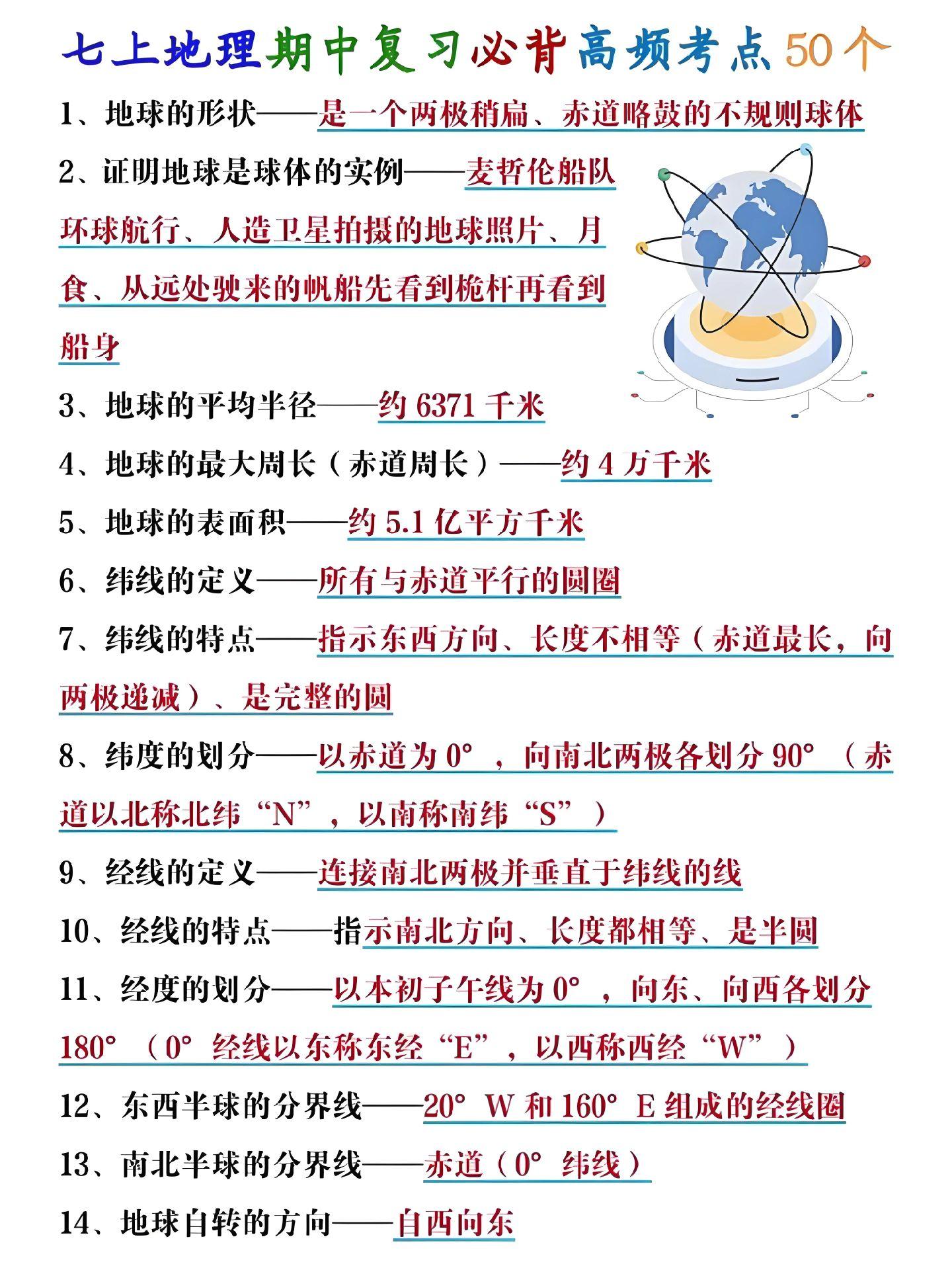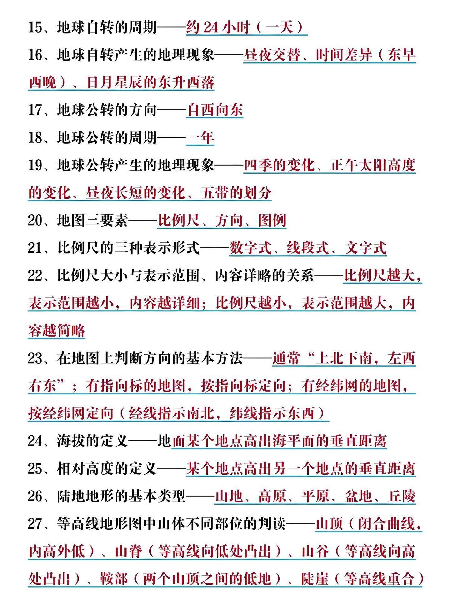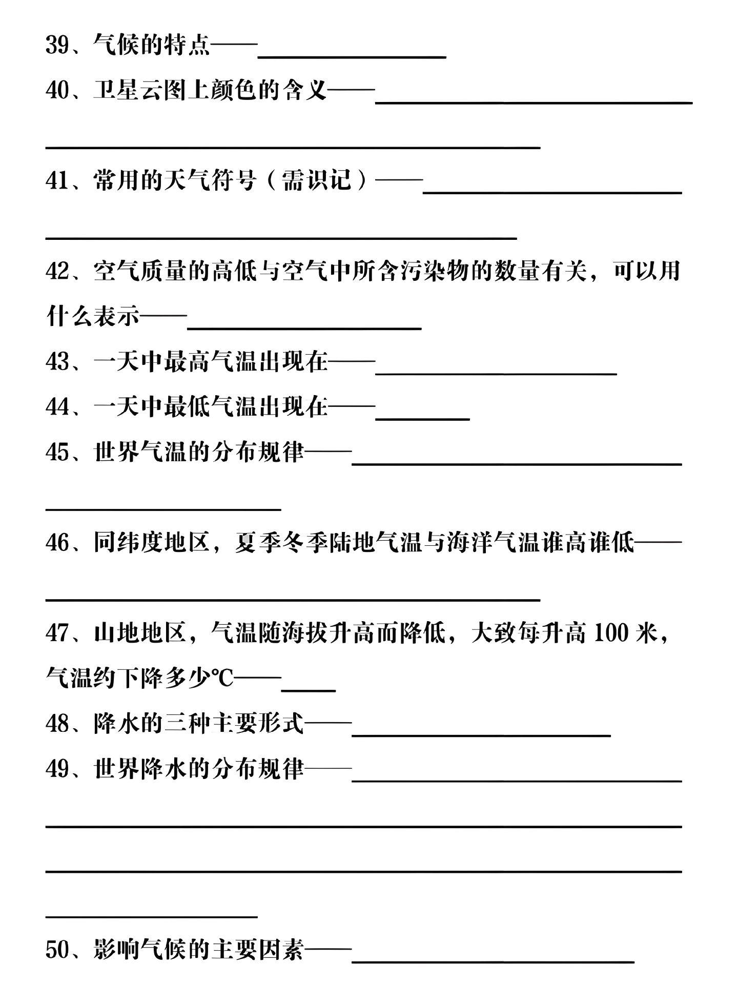 七年级上册地理:全册知识点梳理和常考的72个问答式提纲+七年级上册生物...