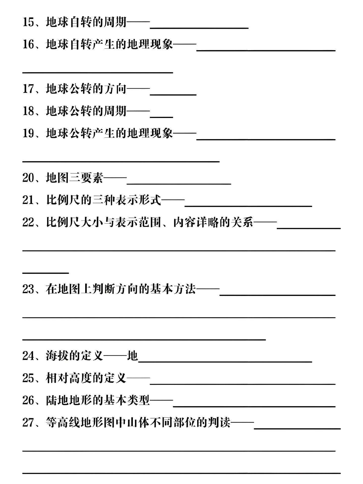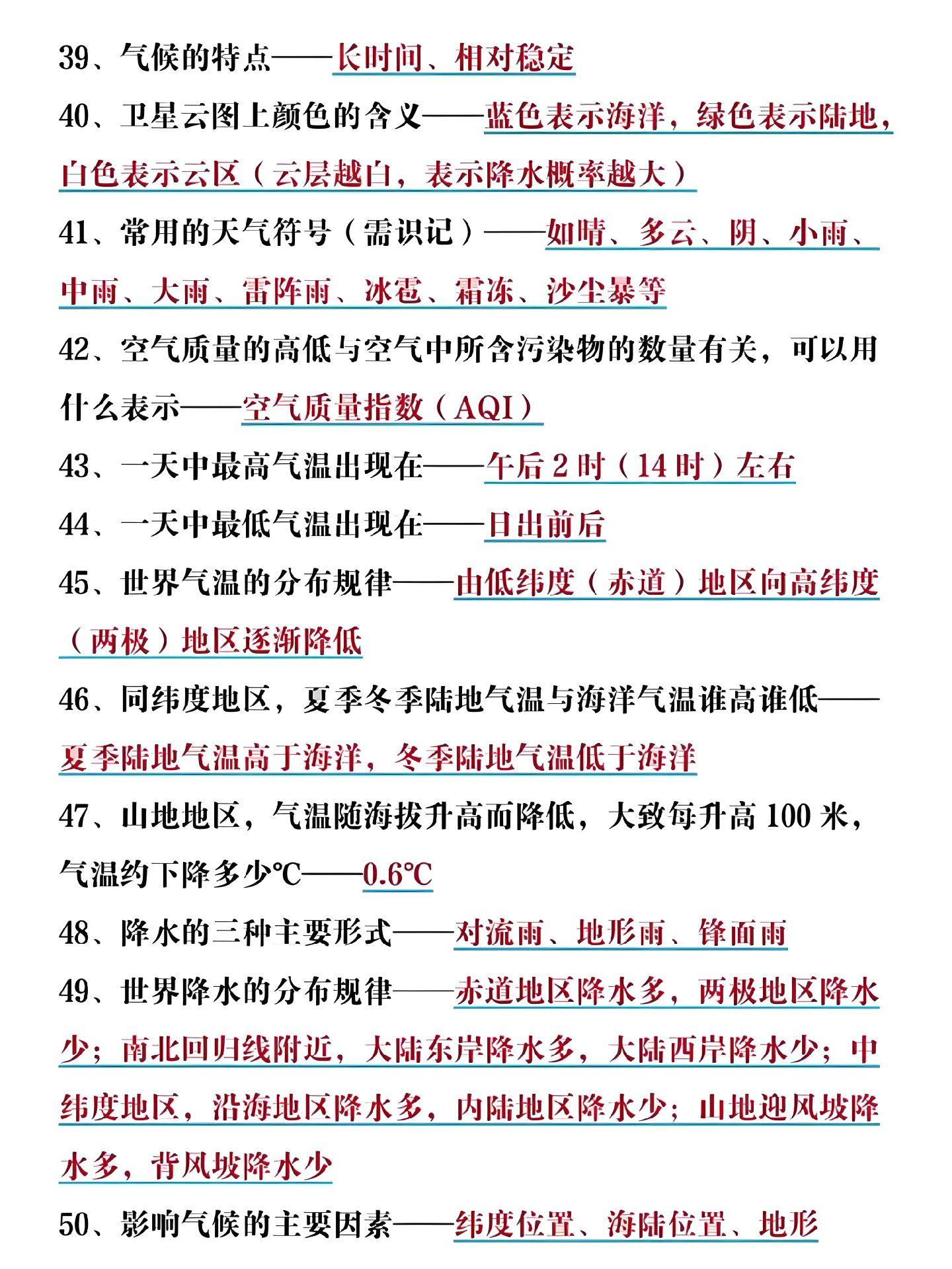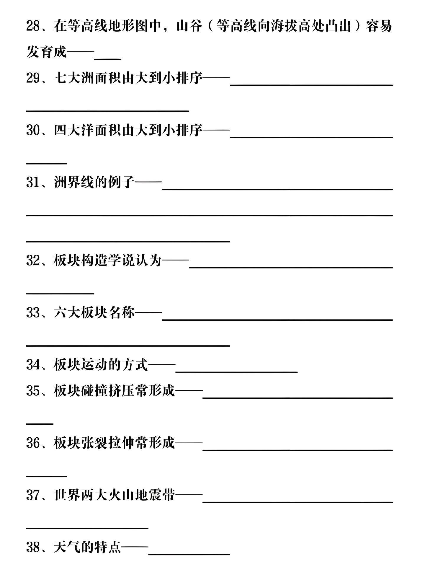 七年级上册地理:全册知识点梳理和常考的72个问答式提纲+七年级上册生物...