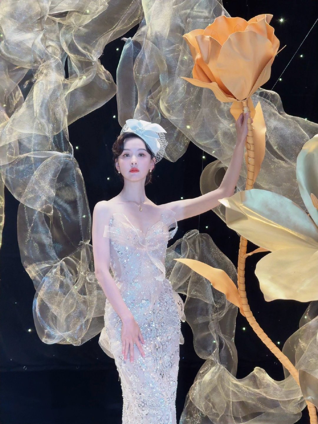 刘亦菲把死亡玫粉穿出了定制款的感觉,这种颜色普通人穿上分分钟黑三度,她居然能穿出