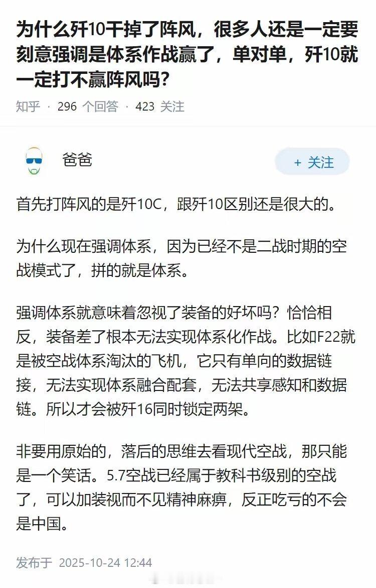 为什么歼10干掉了阵风,很多人还是一定要刻意强调是体系作战赢了,单对单,歼10就一定打不赢阵风