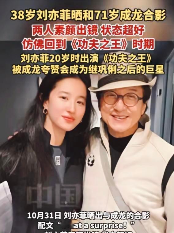 刘亦菲和成龙同框了,没滤镜,没修图,就这么站着,像三十年前一样。 二十年前她演完