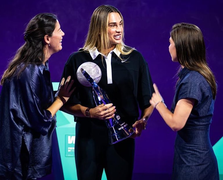 萨巴伦卡连续两年年终第一 在哈菩萨和蘑菇女士的见证下,萨巴昨夜领取了本赛季的年终世界第一奖杯,也是连续第二年获此殊荣🏆🏆