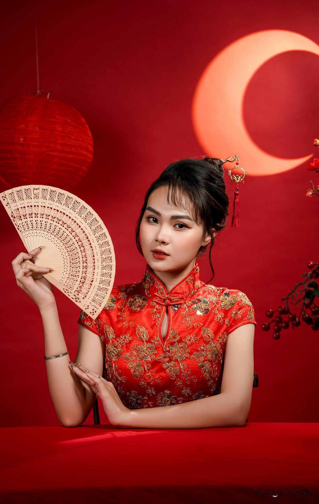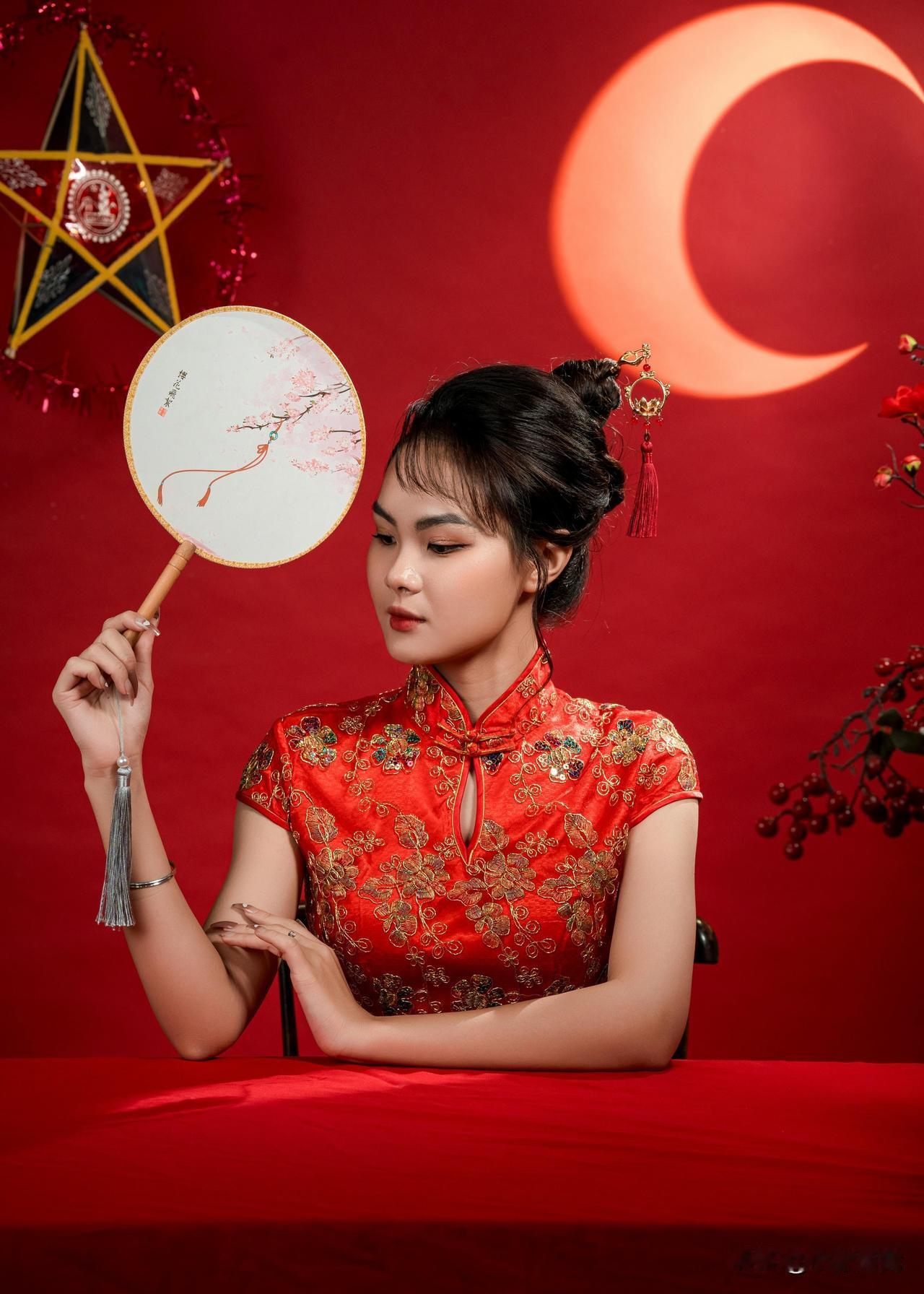 红袖添香,团扇轻掩,一袭旗袍勾勒东方韵致。这组写真以浓烈的中国红为基调,融合灯笼、月影、浆果枝等传统元素,演绎了一场跨越时空的古典浪漫。 女子身着绣金旗袍,发髻低绾,或执团扇含笑,或握羽扇凝眸。在赤色背景的映衬下,每一帧都如工笔画般精致——灯笼映暖意,月牙悬清辉,浆果缀喜庆,仿佛将新春的吉庆、东方的婉约悉数定格。 看看气质女神的穿着搭配吧 旗袍给予什么样女性美?