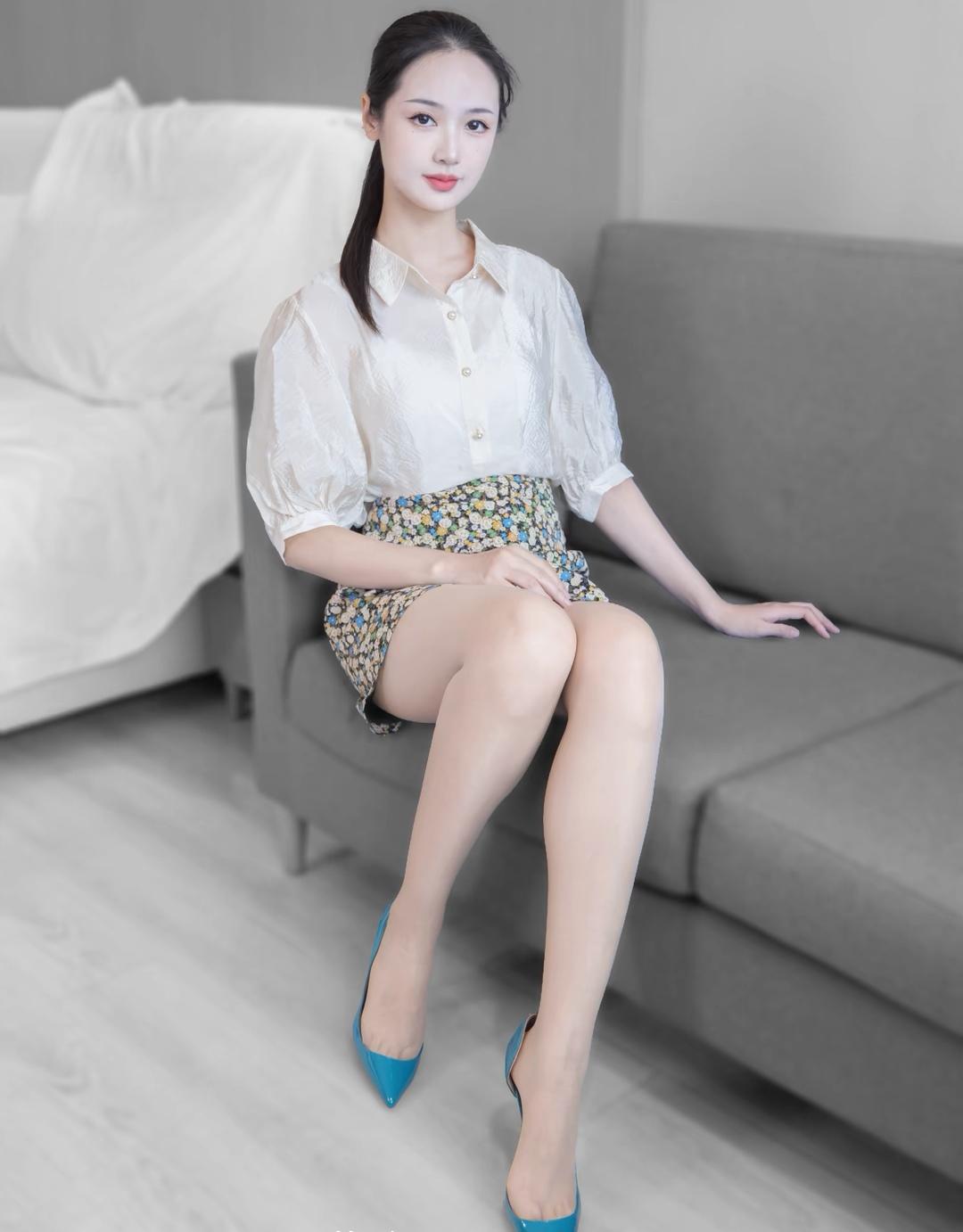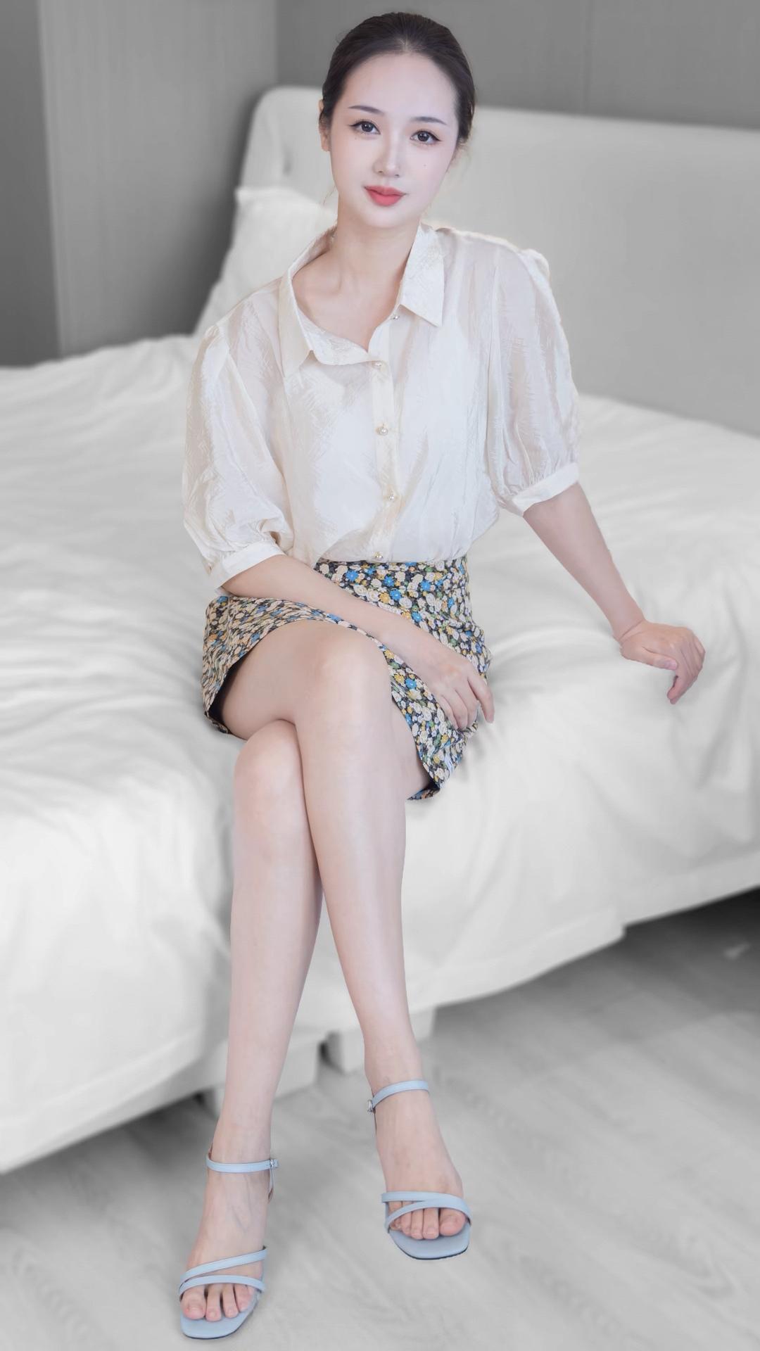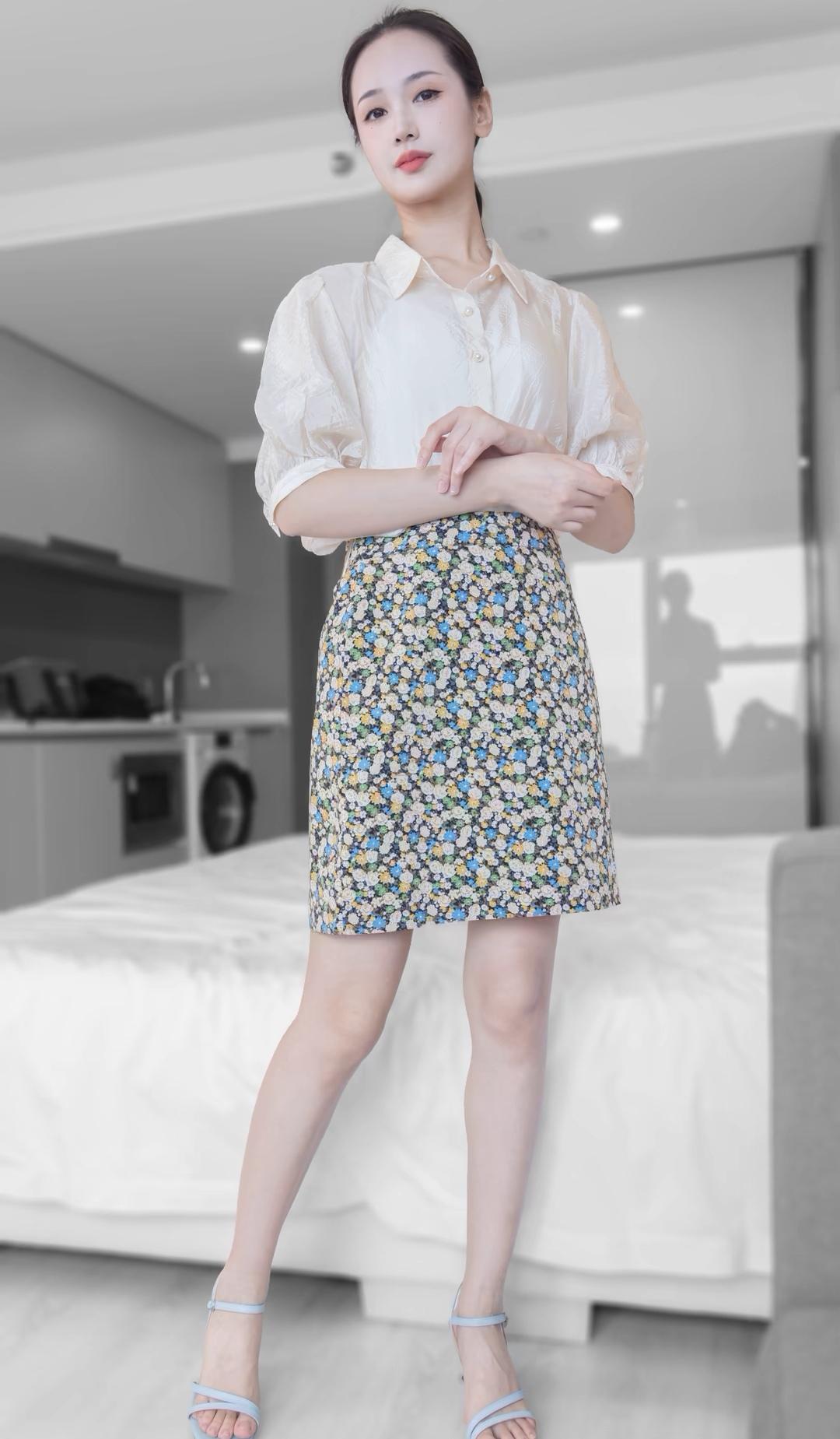 清新夏日穿搭,白色衬衫+印花短裙,轻松自在