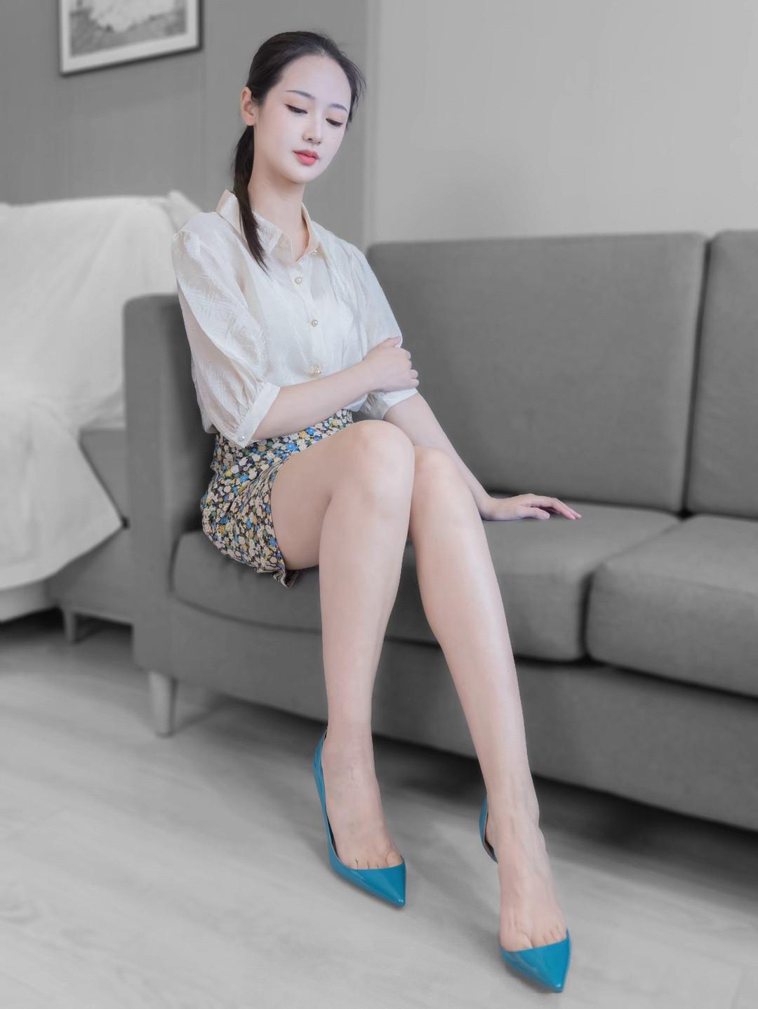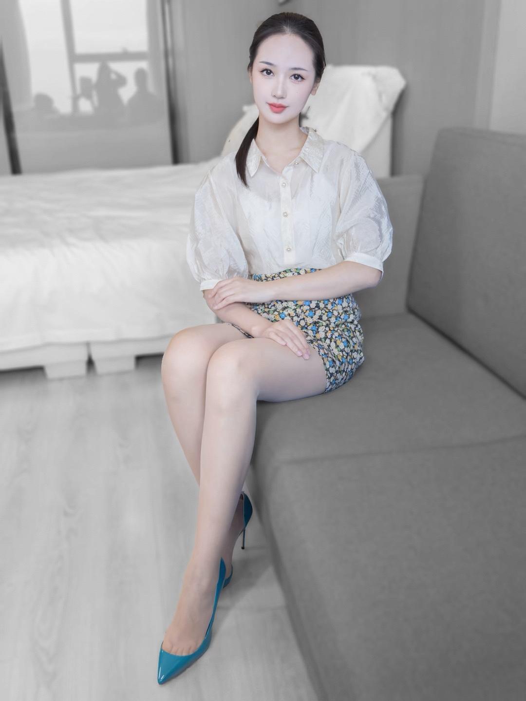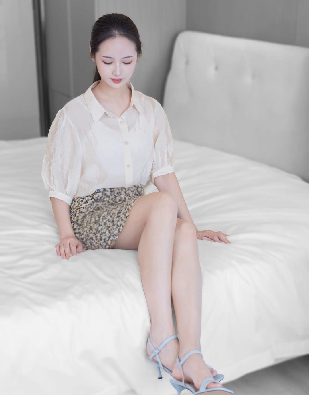 清新夏日穿搭,白色衬衫+印花短裙,轻松自在