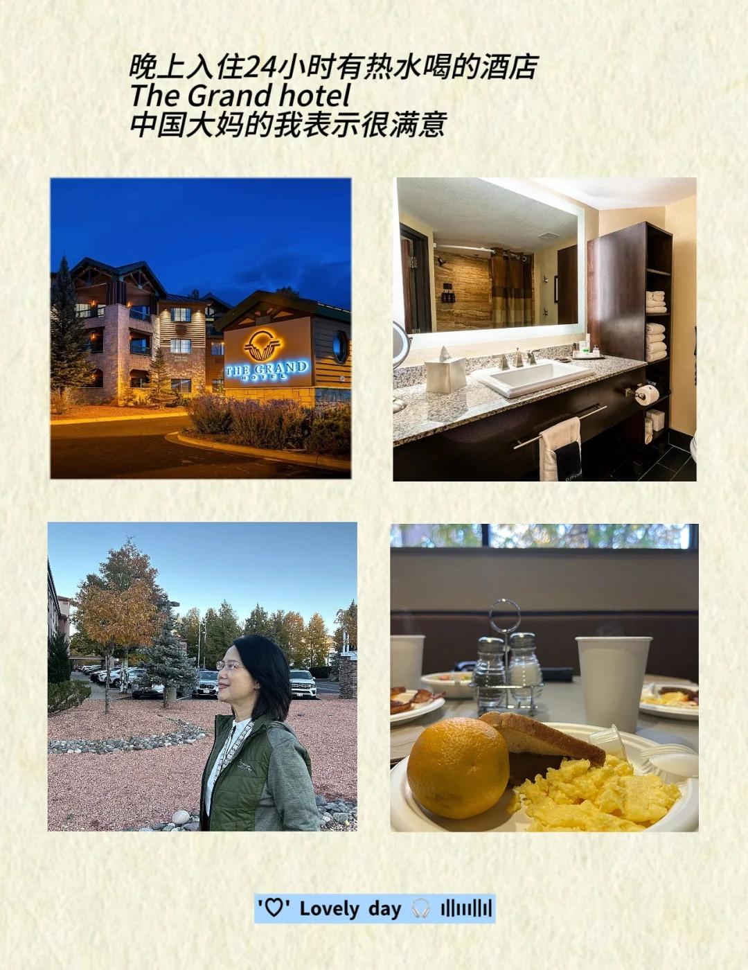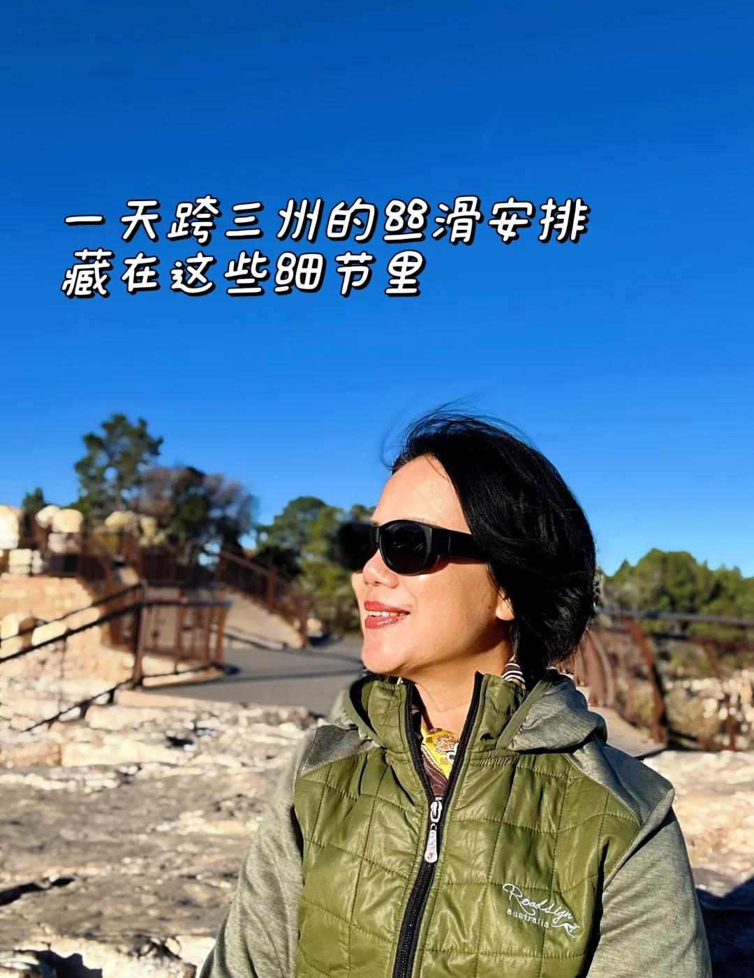 5个细节安排,丝滑开启美西自驾游 7天6晚的美西游,第一天居然跨三个州,本以为会累垮,但儿子每一步踩在点上的安排,让退休的我们没有半点疲惫感! 5个细节安排分享给大家: 休斯顿一早9点的飞机✈️,中午抵达拉斯维加斯,租好车🚗目的地大峡谷小镇Tusayan: 网红汉堡🍔In-N-Out用中餐: 别急着赶路,中餐在拉斯维加斯机场附近的网红汉堡店in-N-out用餐,据说吃货们跨州专程打卡,我们这次顺带了! 沃尔玛采购旅程补剂: 沃尔沃就在🍔店附近,3分钟车程,水、水果、面包等食物,包括队友用的打火机,给7天的行程做补剂,兼顾中国胃还省钱 一款播客APP准备 《小宇宙.一起听播客》App,里面的内容两代人皆宜,让原本单调的车程变沉浸式的“移动课堂”,时间过得飞快。 Williams小镇美食锁定: 正常车程傍晚到小镇,特别推荐Pine country 这家店,亲尝它家的猪排🥩牛肉、鸡腿,均好吃,傍晚的小镇也特别美 选择一家有热水喝的酒店入住: 晚上8点左右到达大峡谷小镇格兰德酒店the grand hotel,一楼餐厅24小时有喝的热水提供,好惊喜,中国大妈表示很满意👍 从休斯顿的晨光,到拉斯维加斯的正午,再到大峡谷的暮色,德州、亚利桑那州、犹太州,从短袖到羽绒服,一天跨三州的行程,丝滑感哦 第二天就要进大峡谷,开始期待! 外人节 户外48小时 出发大峡谷美西旅游