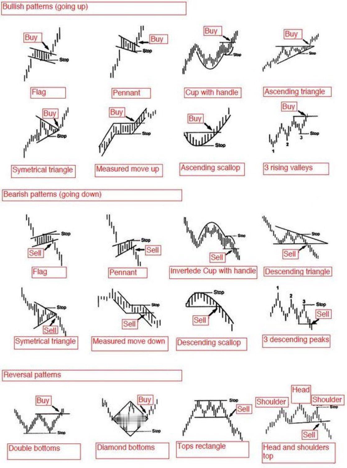 图表形态速查表(看涨、看跌和反转)