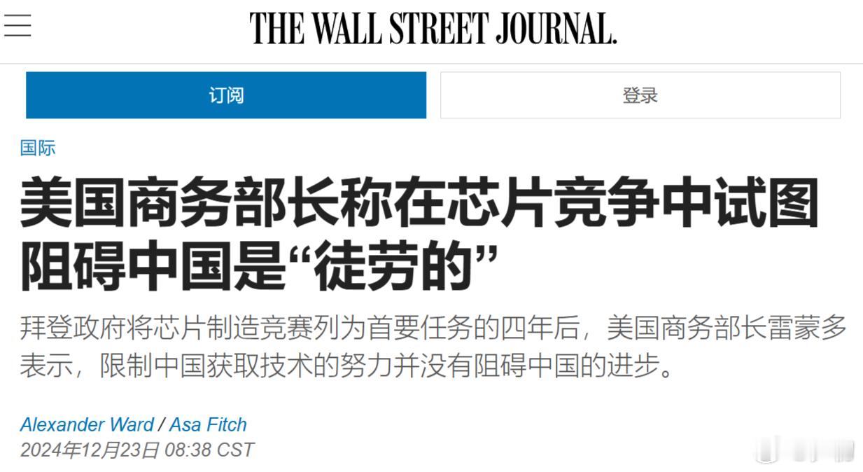 美国前商务部长任内雷蒙多推出了总额约为527亿美元的《芯片与科学法案》,现在卸任了承认对华芯片管制是徒劳的。公布计划,要拨款;钱花没了,继续公布新计划,再要拨款!你看看人家西方的套路贷!