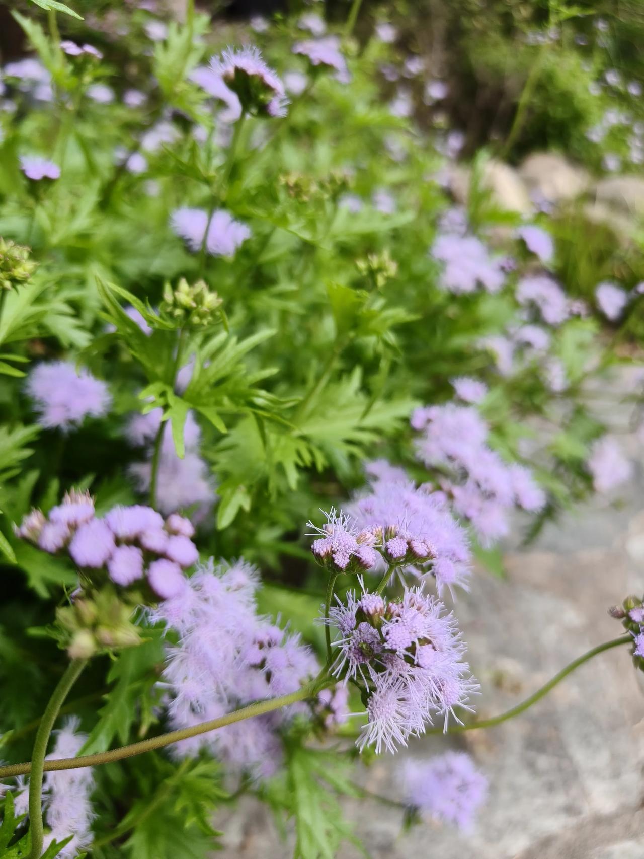 带大家认识一种小植物~蓝雾草🌿 蓝雾花的花朵像放大款的藿香蓟,花朵伸出部分比藿香蓟的花朵更长。 植株直立性佳,自然成丛,不易倒伏,耐修剪。成熟株高约40-50cm,在花镜、花园中,都有很好的表现。 耐寒性佳,可耐零下10摄氏度低温,冬季休眠。半阴、全阳都可养护。 夏季耐热耐晒,可泽生,夏季开花。主要花期为春末至秋初,花后修剪,可持续开花。 在夏季花园中,是一道柔软质感的浅蓝色风景。 整个植株都非常有山野风情气息,生命力旺盛~是一款养护难度较低的耐热型花卉品种! 部分南方地区,甚至可实现全年开花的效果哦!