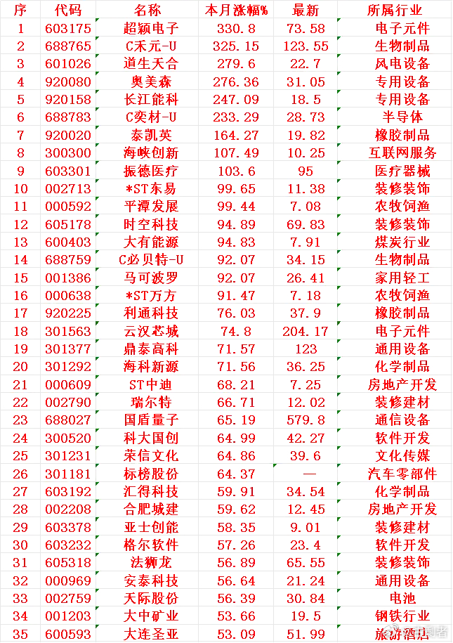 超颖电子:本月涨幅 +330.8%,总市值 321.6亿元