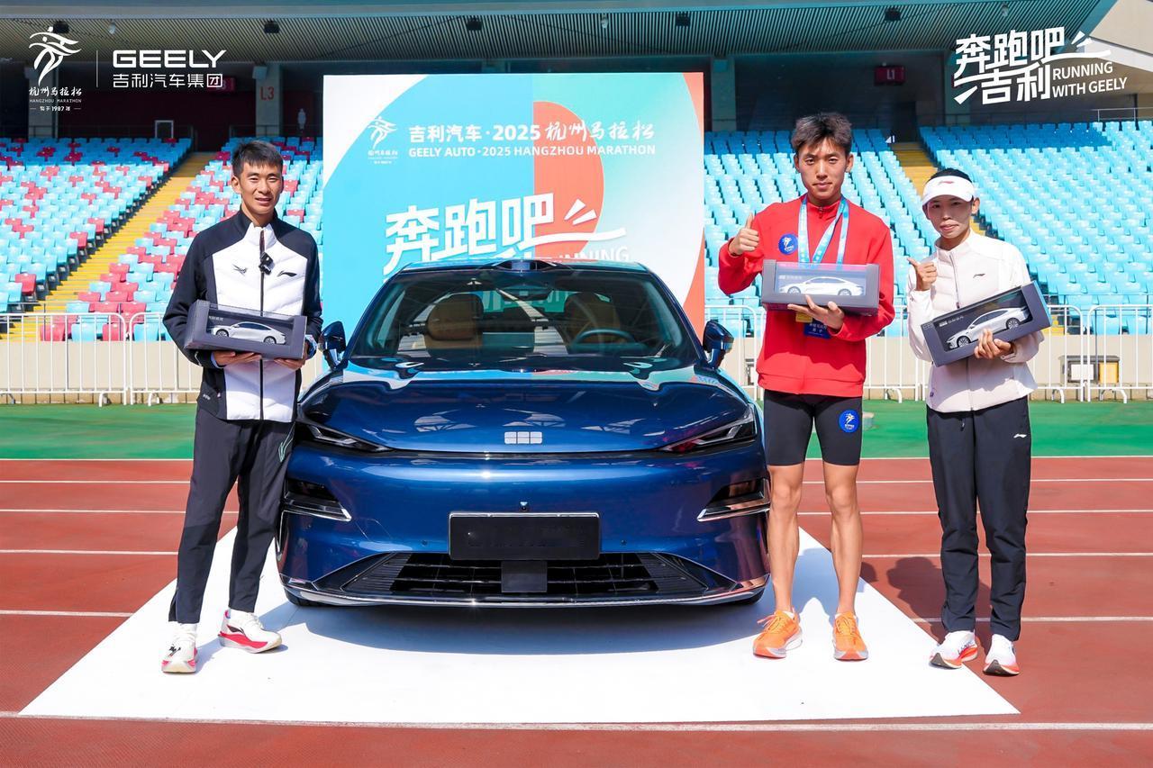 今天快乐开跑,吉利全程守护,致敬每一位跑者!恭喜打破杭马赛会中国籍全马、半马纪录的冠军选手获得杭马大奖——吉利银河M9、吉利银河星耀8。 唯跑者一直向前