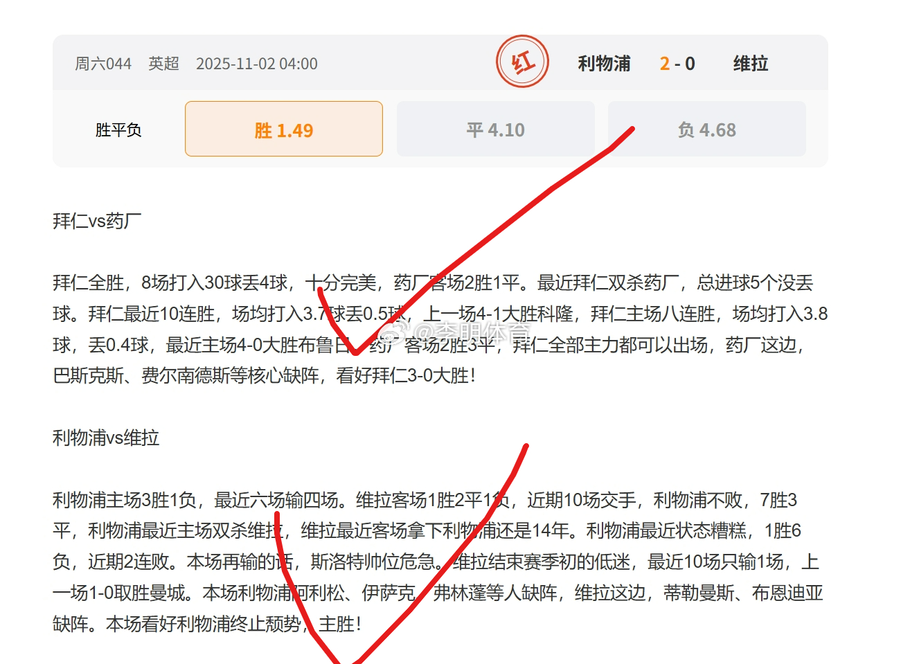 昨日四推全红!中拜仁比分就是这么牛!今日四场已发,大家移步我主页置顶!五大联赛这