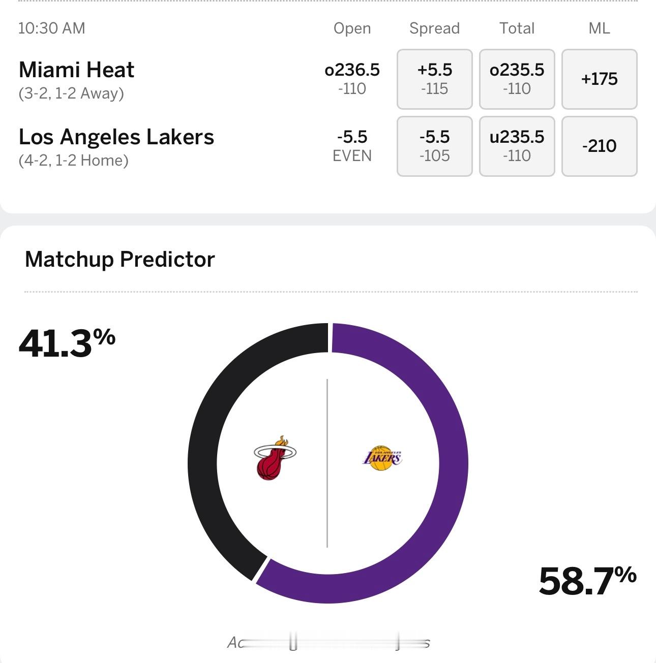 ESPN预测湖人胜率58.7%。