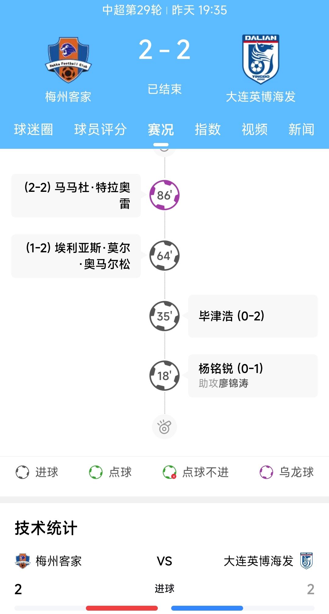 大连英博首个赛季的中超联赛没有保级的压力,整体表现可圈可点,不过对于球迷来说有点小小的失望。 因为大连英博客场比赛成绩一般,打完15个客场只在长春亚泰拿到胜利,除此之外大连英博在客场没有拿到胜利。 更主要的是昨天大连英博在2球领先的情况下被梅州客家扳回2球。看到这里不禁感慨下个赛季大连英博需要在客场有好的表现,只有这样才能有希望拿到中超冠军。