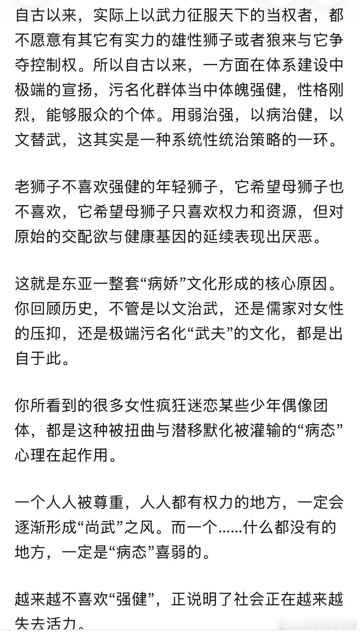 其实这种审美变化就是一种规律:和平年代有肌肉精壮的不受欢迎,因为大环境安稳,有肌肉精壮反而可能打人;不那么安稳的年代,有肌肉精壮就成了一种能带来安全感的可靠形象[挖鼻]
