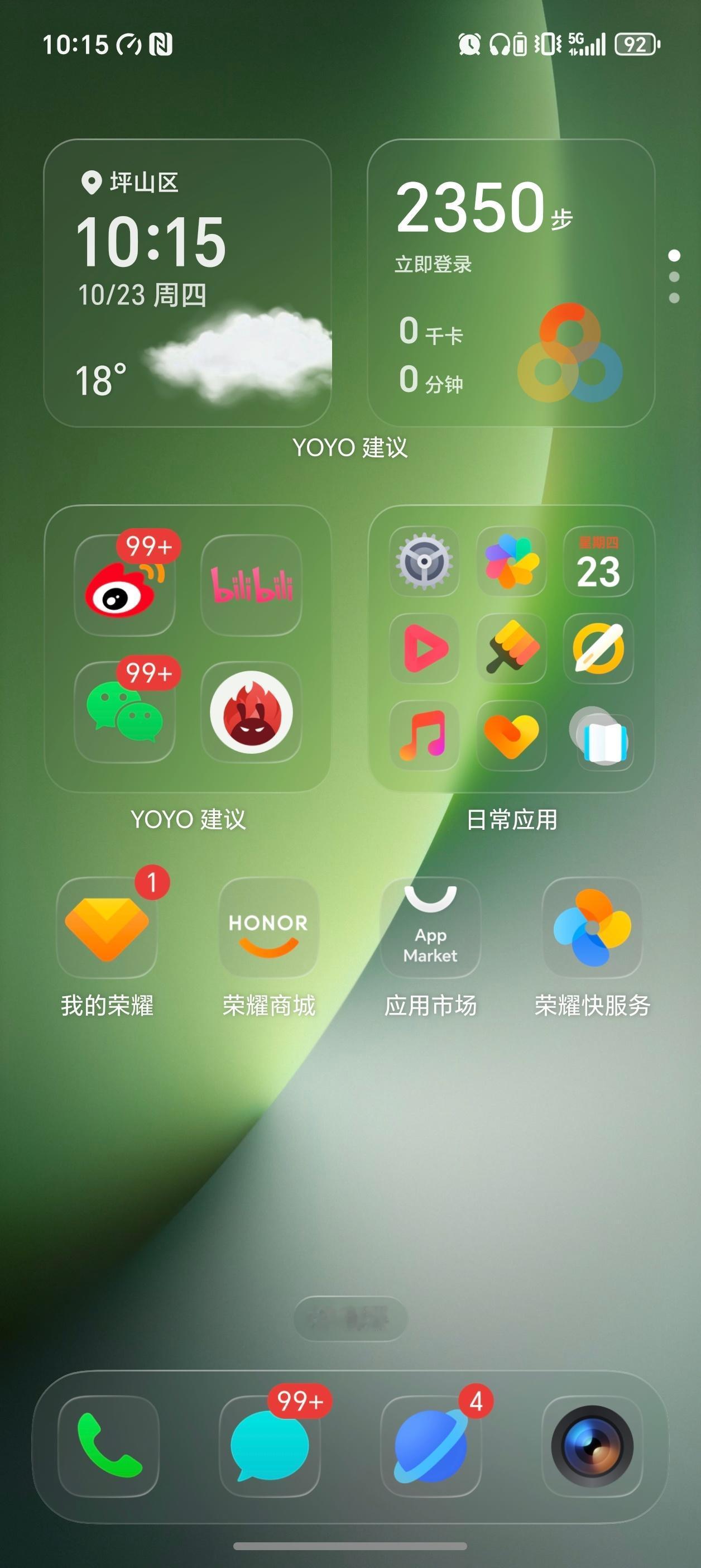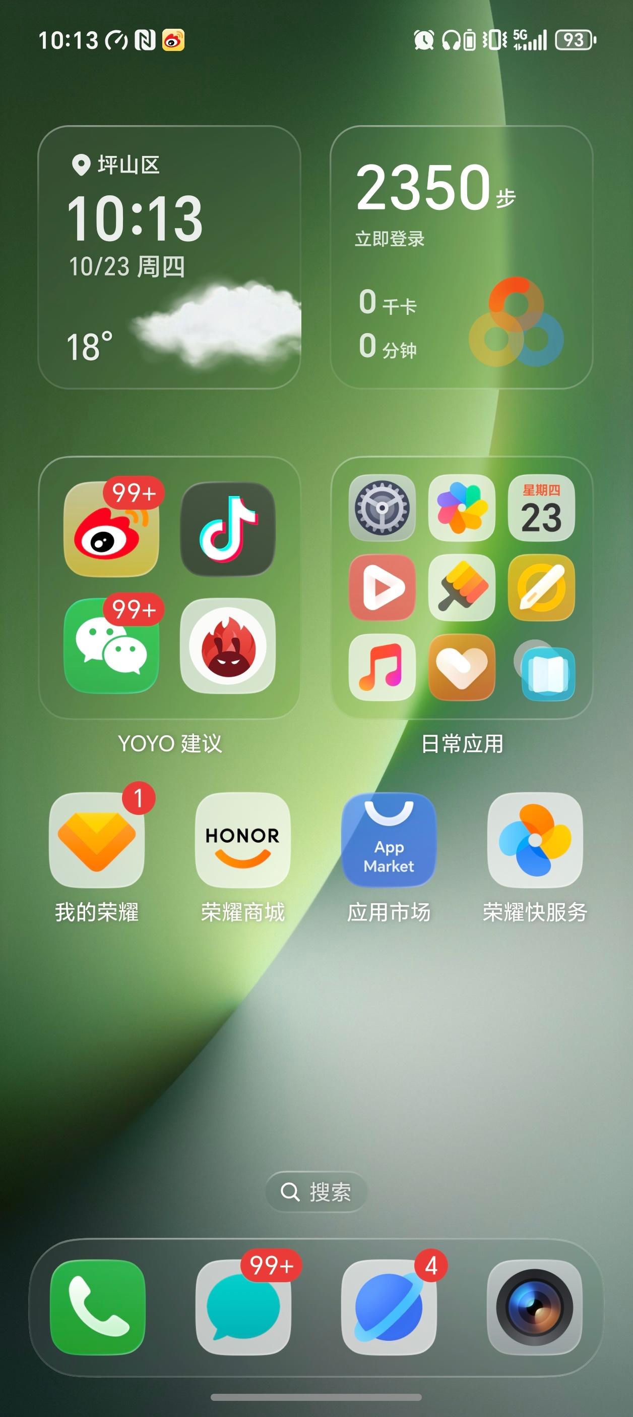 荣耀MagicOS10的三种桌面显示 1.正常模式 2.通透模式(图标白色通透)