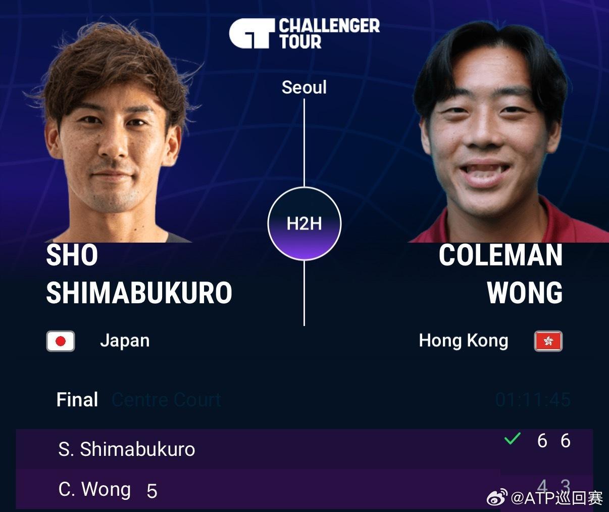 ATP挑战赛 首尔站男单决赛,日本球员岛袋将以6-4 6-3战胜5号种子黄泽林,成功夺得冠军。
