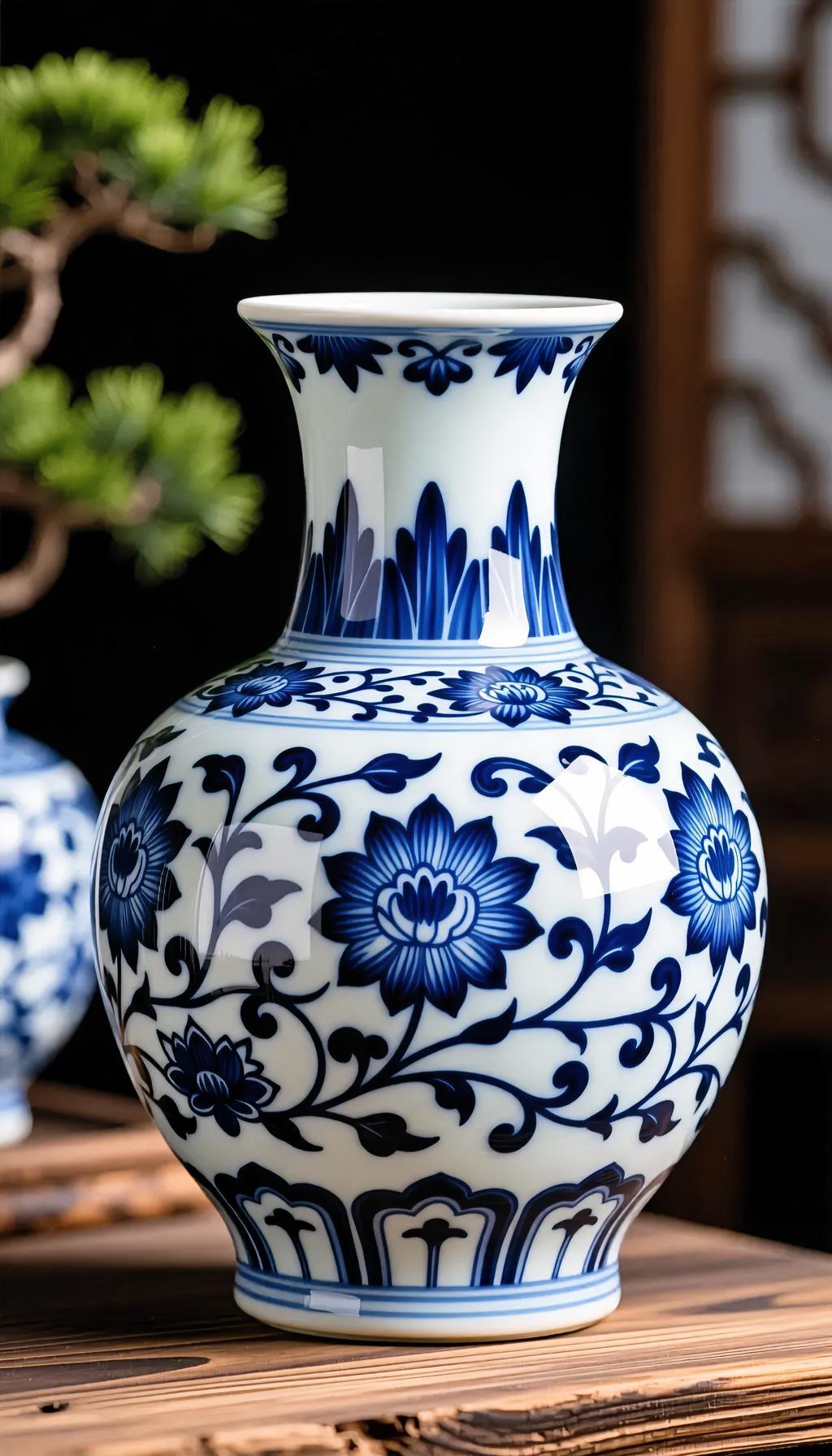 “青花瓷瓶映碧空,花影摇曳入诗中”,这画面简直美到骨子里。 就像清代龚轼说“白釉青花一火成,花从釉里透分明”,青花瓷那一抹幽蓝,在碧空的映衬下,更显空灵。而花影在风中摇曳,恰如“春风轻拂花影动,枝头轻摇舞翩跹”描绘的那般,姿态轻盈。 想象一下,在这样的场景里,拿笔写下一首诗,把这青花瓷的静美和花影的灵动都融入其中,仿佛能将这一瞬的美好永远定格,让时光也沉醉在这诗意里。