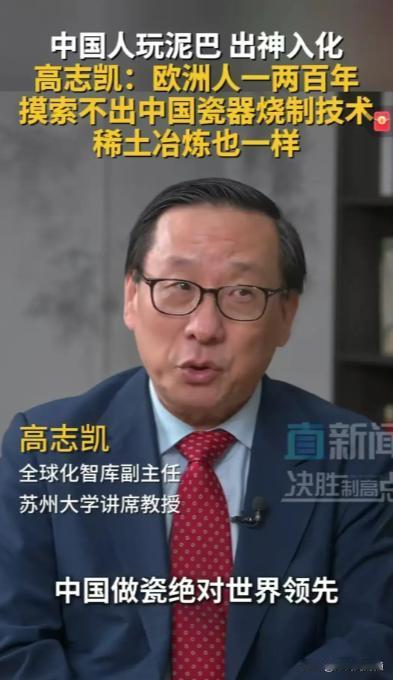 高志凯教授一张口就能把西方整崩溃。他说,中国的瓷器烧制技术,欧洲花了一两百年也赶不上,现在稀土冶炼也是一样的。 中国瓷器能领先世界上千年,可不是靠运气。最核心的秘密就是温度,烧陶器只要摄氏800度,但要想烧出真正的瓷器,温度得冲到1200度以上。欧洲人长期连这个门槛都迈不过去,他们那时候最多也就烧烧玻璃,所以中国瓷器运到欧洲,直接被当成奢侈品,一个瓷罐能换一支军队。 哪怕到了18世纪,德国人偷偷搞了三万多次实验才勉强摸到门道,可中国工匠早在东汉就已经玩得风生水起了。这背后的差距,不只是技术,更是整个产业体系的积累,从龙窑的设计、高岭土的配比,到把桩师傅看火候的独门经验,这些都是欧洲人当时完全摸不着头脑的“玄学”。 稀土这玩意儿,简直就是现代版的“瓷器”。中国稀土储量占全球三成多,但最厉害的不是地下有多少矿,而是能把石头变成“工业黄金”的本事。全球92%的稀土冶炼分离攥在中国手里,美国造F-35战机需要的稀土,七成还得从中国进口。这就像当年欧洲贵族捧着中国瓷碗吃饭一样,现在美国军工企业离了中国的稀土材料,连导弹生产线都可能停摆。 为什么西方就是绕不开中国?因为稀土矿大多和其他矿物混在一起,提炼过程像做外科手术,需要一套极其复杂的化学配方和工艺参数。中国靠着几十年摸索出的串级萃取技术,能把成本压到欧美三分之一,效率反而高出一大截。 美国不是没试过自己干,国防部砸了15亿美元重建供应链,结果到现在分离能力还不到需求的5%,简直像让一个刚学会生火的人去复制满汉全席。 高志凯之所以敢这么硬气,是因为他看透了技术霸权的本质,它不是靠抢资源,而是靠积累出来的系统优势。当年中国瓷器垄断全球市场800年,靠的不是藏着矿不让挖,而是从水碓捣碎瓷石,到龙窑控制氧气的整套流程优化。 现在稀土也一样,中国从采矿、分离到做成永磁材料,全产业链都能在自己家里完成,甚至还能用AI预测萃取效率。这种深度整合的能力,西方短期根本复制不了。 说到底,从瓷器到稀土,中国一直在做一件事:把技术门槛垒成高墙。高志凯在日内瓦辩论时,提到中国军舰从不开到佛罗里达海岸,但美国航母却常年在中国周边转悠。这话看似谈军事,其实戳的是同一个痛点,西方总想用霸权逻辑打断别人的积累进程,但真正的技术领先,是偷不走、也吓不倒的。 所以高志凯的“嚣张”,背后是五千年文明攒下的底气,我们经历过用瓷器换光西方白银的时代,也正在经历用稀土卡住西方脖子的时代。下一个一两百年,规则可能还会变,但积累的深度,永远比嗓门的大小更有说服力。