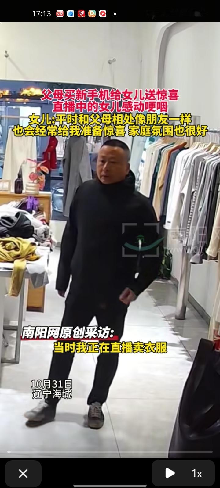 10月31日,鞍山海城市。02年女儿在直播卖衣服,本以为爸爸是来店里接下班,爸爸说拉链卡住了,让她把拉链拉下来。正当女儿思索爸爸说什么话时,爸爸突然从怀里掏出了手机和手机壳,女儿看着感动哭了,感觉特别幸福
