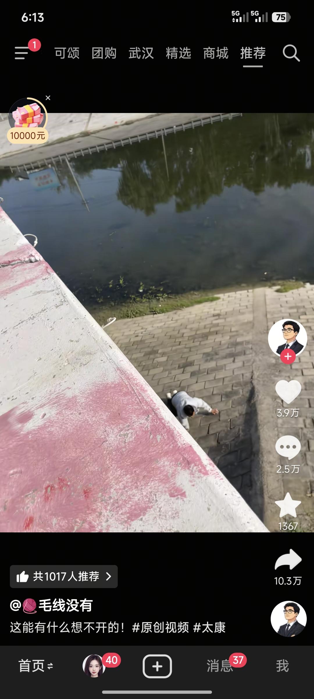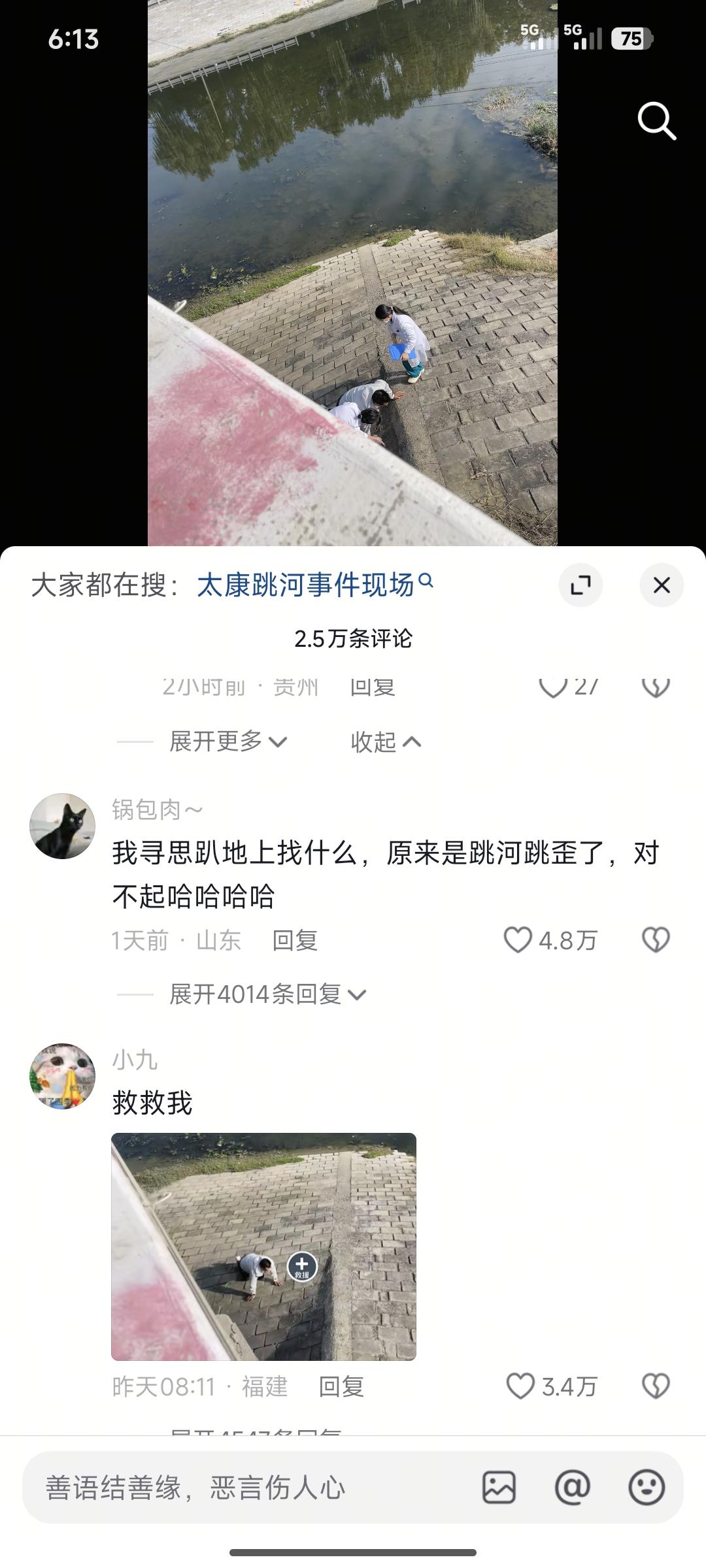 我刚才刷到了 这男的想不开要跳河 结果跳歪了 把腿摔骨折了 后面到了医院 医生先给他挂的精神科 我以为搁哪里找啥呢 刚开始刷到这个视频 哈哈哈哈哈