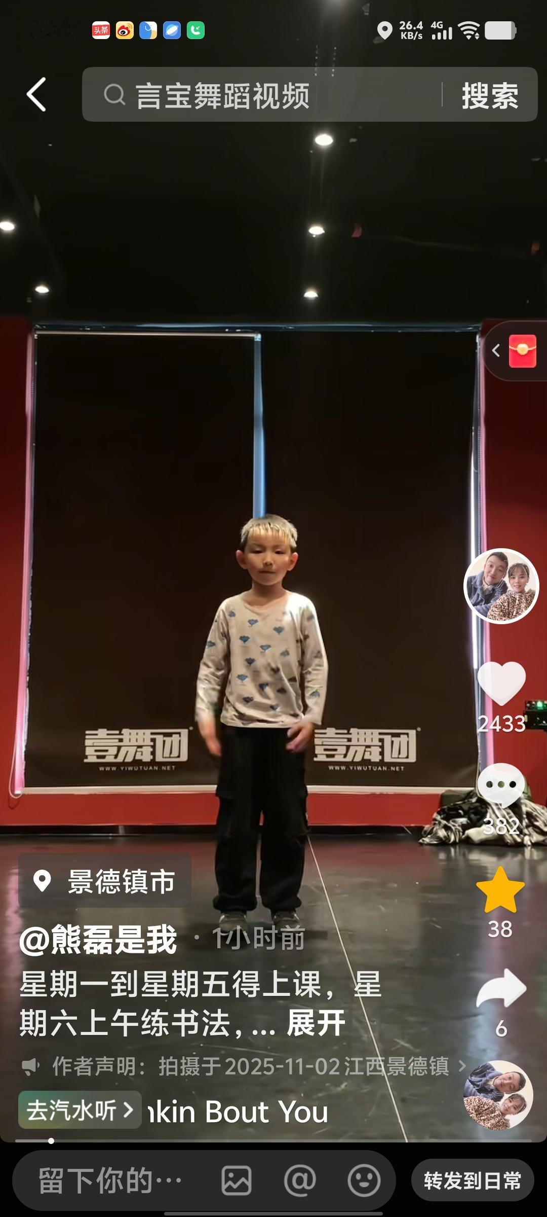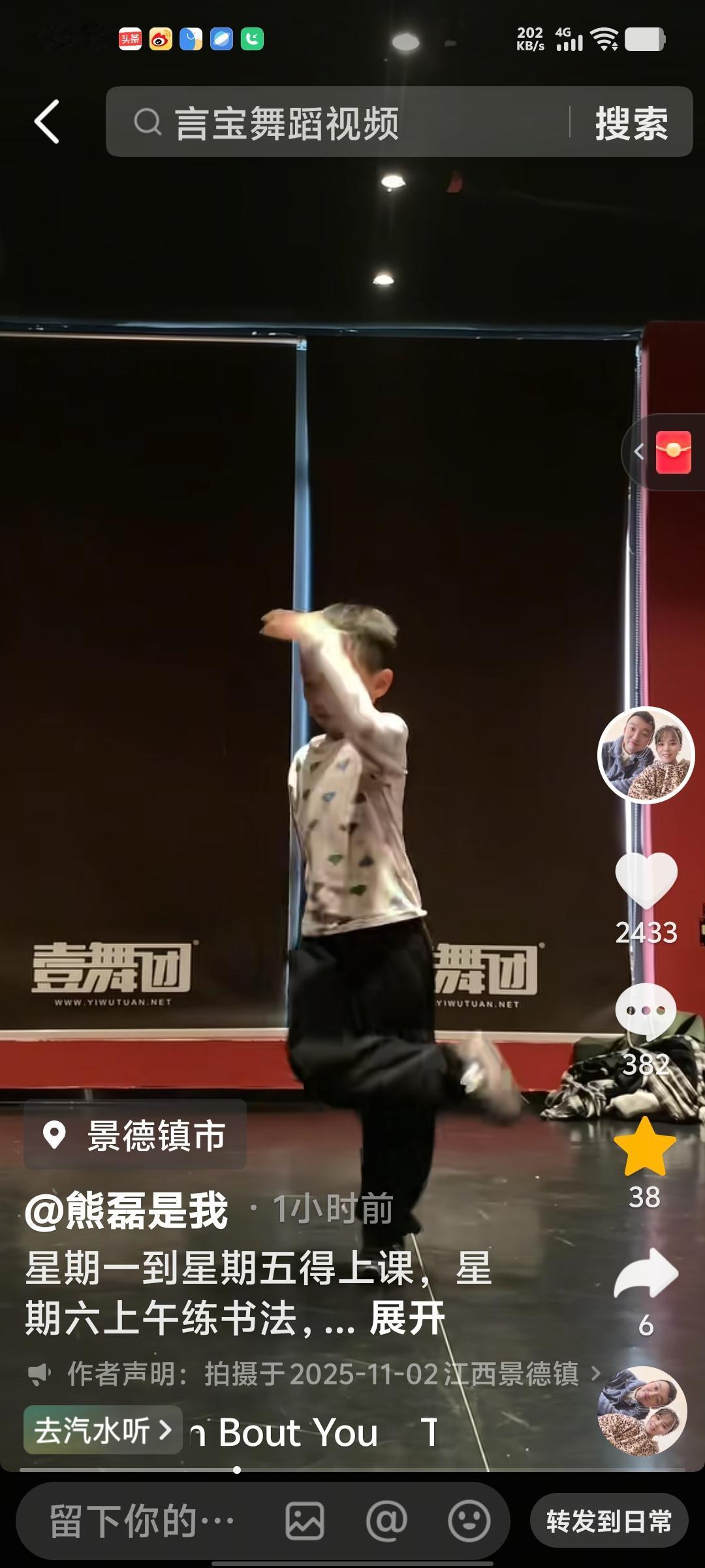 熊磊晒言宝跳舞视频!孩子连轴上课练舞比打工累,她感慨生活不易只同频共振 熊磊把言宝的跳舞视频,他说现在的小孩子太辛苦了,周一到周五要学习上课, 周六上午练书法,下午练跳舞,周日下午练跳舞,比我们打工还累, 视频中的言宝个子又长高了不少,跳的满头大汗,很认真。熊磊也对着镜头说。 生活不易,好好珍惜。没有能力给每一个人都留下好印象。只和同频共振的人互相鼓励。 评论区也有不少人支持他。当然也有人反驳他,他都给了回复。