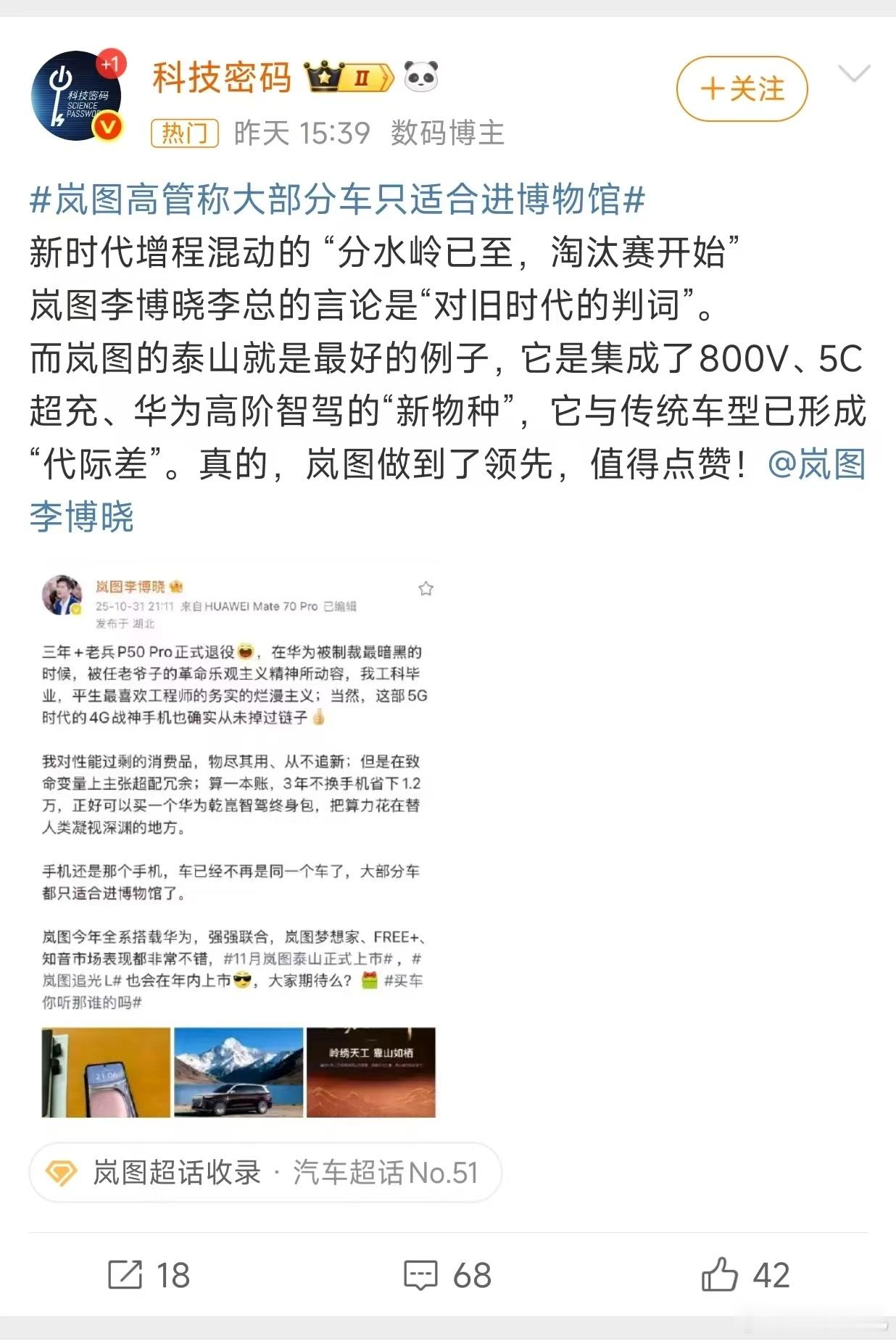 岚图高管称大部分车只适合进博物馆