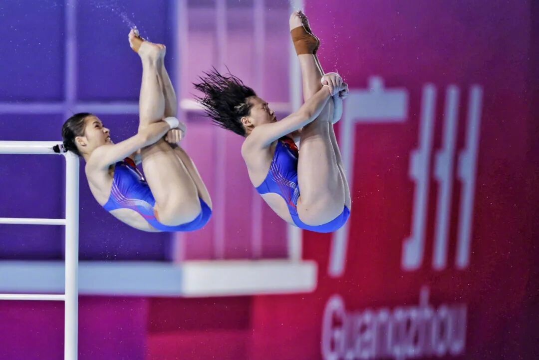 #全红婵复出首秀女团夺冠#【广东队全红婵/王伟莹获十五运会跳水女子团体双人10米跳台冠军】#广东队斩获十五运会跳水项目首金#11月2日晚,广州,第十五届全国运动会跳水项目决出首枚金牌,广东队全红婵/王伟莹夺得女子团体双人10米跳台冠军。广东队不负众望夺得女子团体冠军,成功卫冕。祝贺!摄影:南都N视频记者 黎湛均(综合新华社、央视新闻)#全红婵首秀第1跳全场最高分#